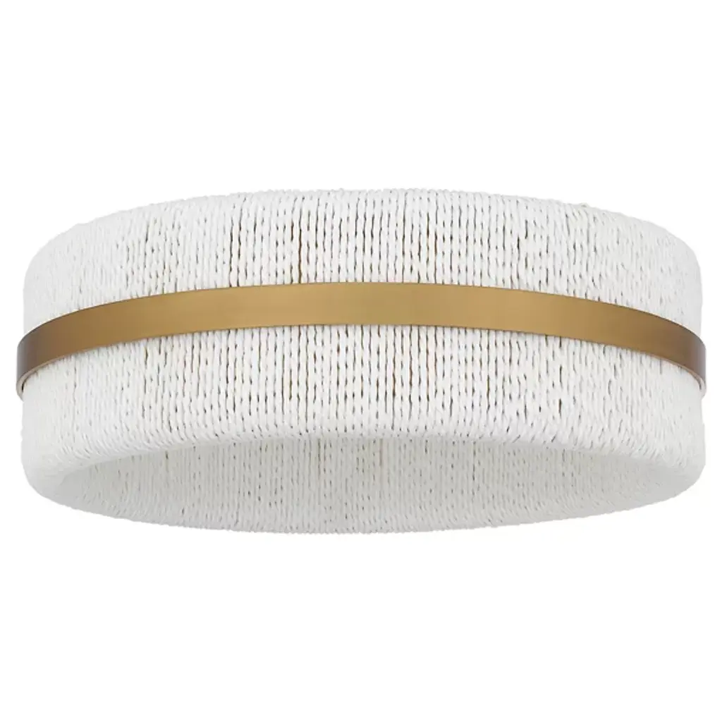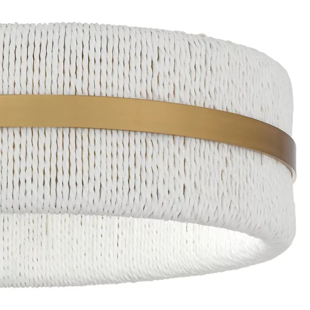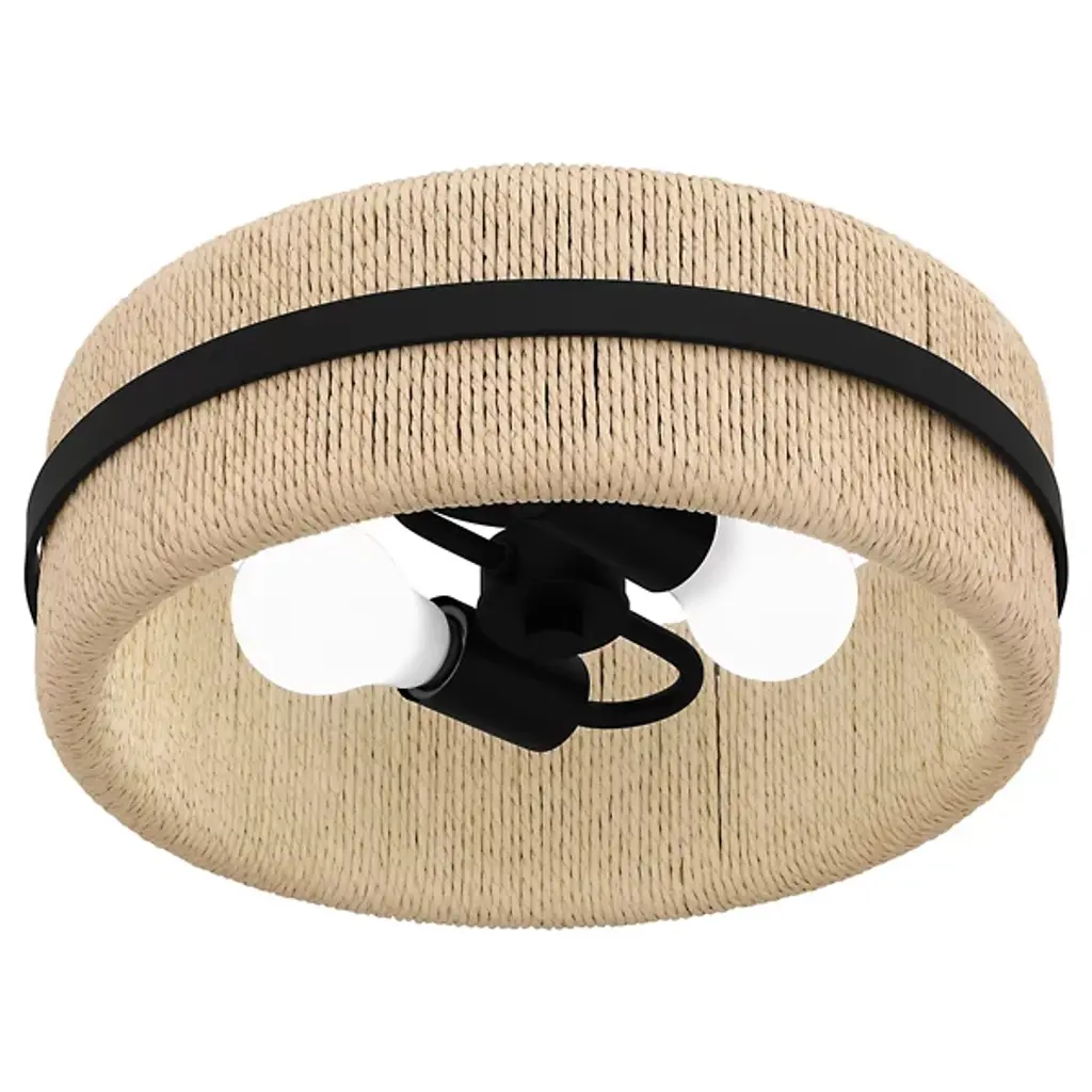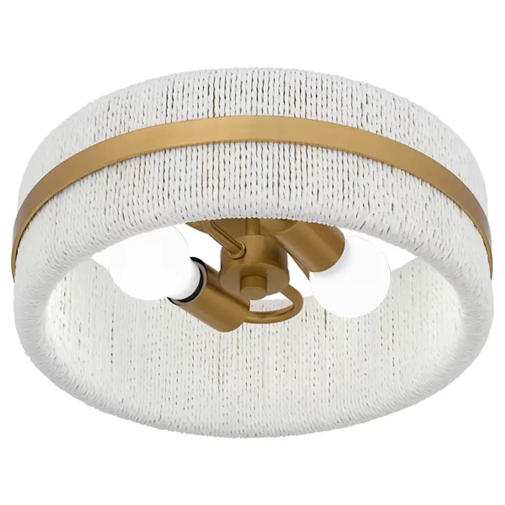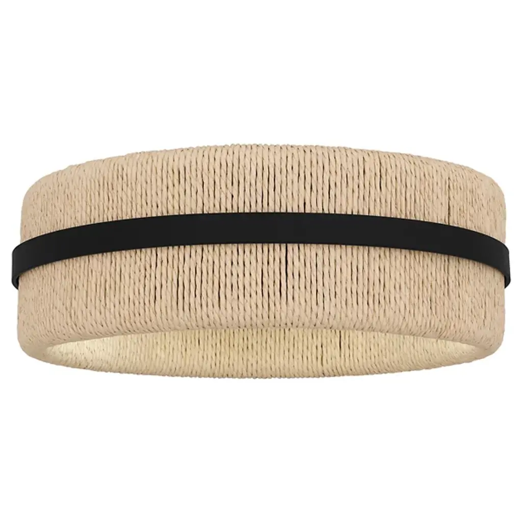 The Maeve Flushmount from Quoizel redefines ceiling lighting with its innovative blend of textures and materials. This fixture showcases a circular drum profile with a unique twist – a rope shade that enhances texture and visual interest. The interplay between the natural fiber shade and steel accent produces a visual rhythm. Ideal for bathrooms, bedrooms, or cozy reading nooks, this flushmount serves as a conversation piece, bridging the gap between functional lighting and artful decor.