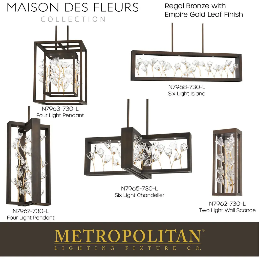 This 4 light Flush Mount from the Maison Des Fleurs collection by Metropolitan will enhance your home with a perfect mix of form and function. The features include a Regal Bronze with Empire Gold finish applied by experts. This item qualifies for free shipping!