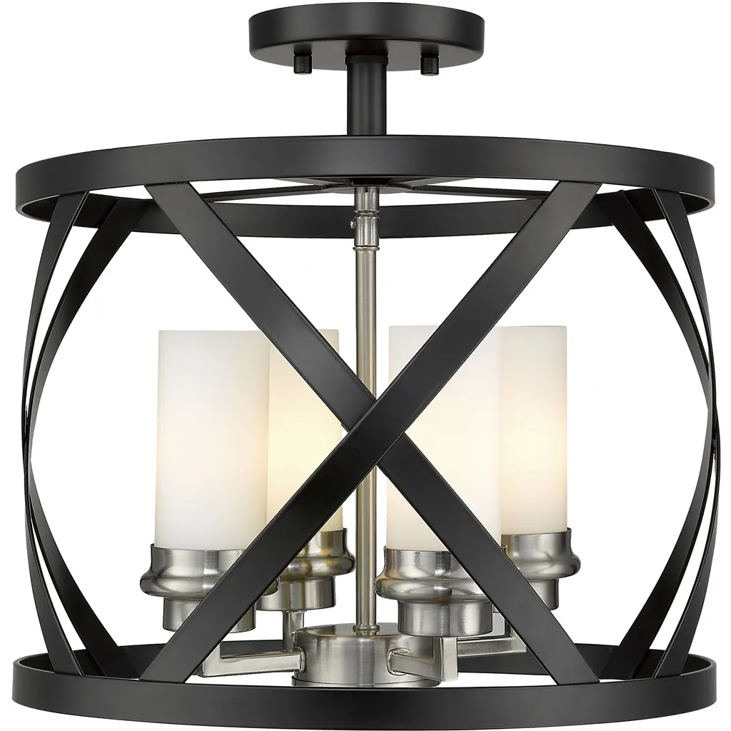 Enhance your home lighting with the eclectic charm of this two-tone four-light flush mount light. It features a combination matte black and olde brass finish in a stylish round design highlighted by an X-cross pattern. You and yours will enjoy the immediate upgrade in ambiance this light brings to any hallway, bedroom, dining room, or living room.