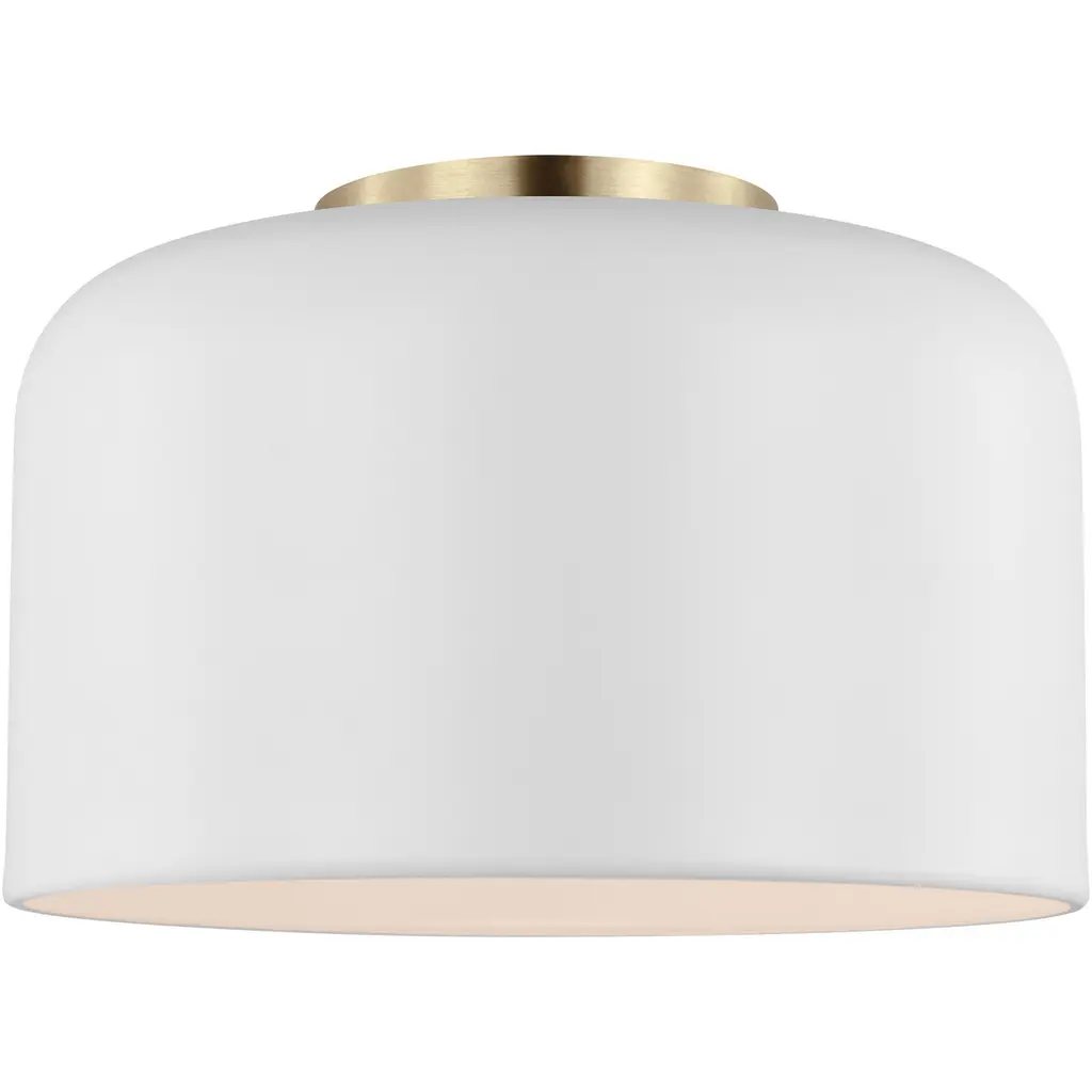 The Malone collection features a youthful color palette andßsimple detail that really refines the design. The inner part of theßshade is highlighted by a beautifully spun-metal disk and socketßcover in our warm satin brass finish to create visual interest. Add minimalist chic to your kitchen living room, bedroom or foyer or with this flush-mount fixture, which is as durable as it is beautiful