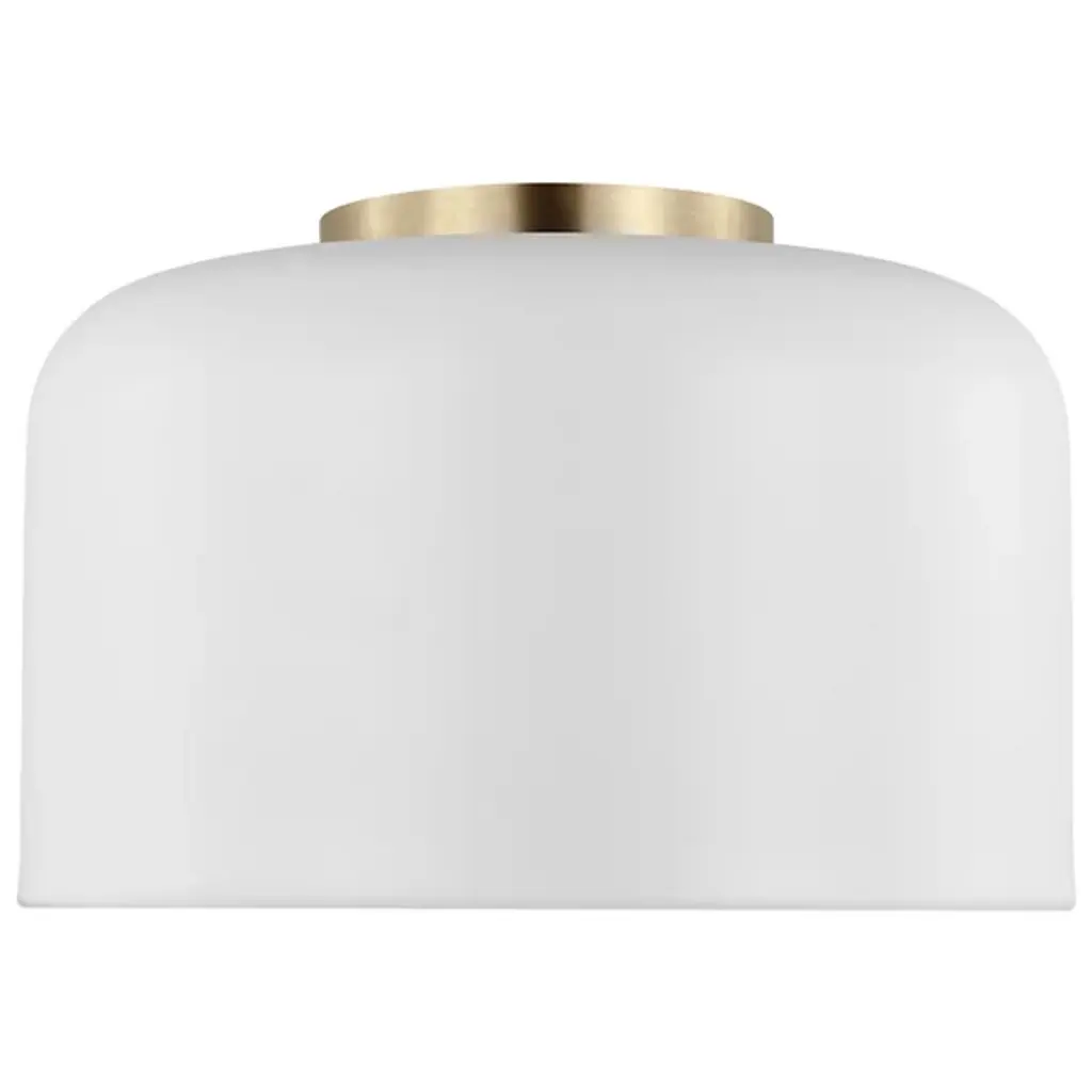 The Malone Flushmount by Visual Comfort Studio, formerly known as Sea Gull Lighting, gives your home décor a simple and clean aesthetic. The Malone Flushmont features youthful, simple detail that refines the design. The inner part of the shade is highlighted by a beautifully spun-metal disk and socket cover. Add minimalist chic to your kitchen, living room, bedroom, or foyer with this flush-mount fixture, which is as durable as it is beautiful.
