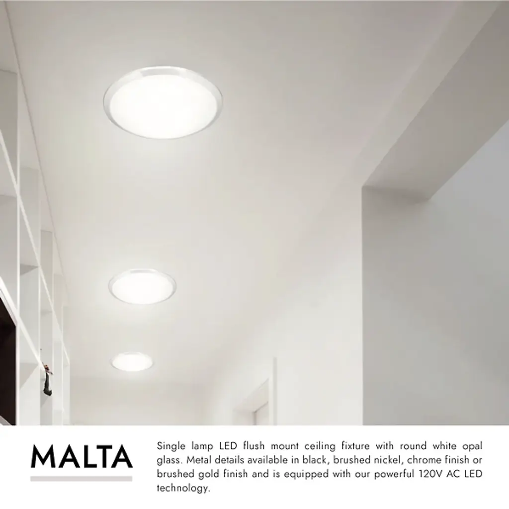 The Kuzco Lighting Malta Flushmount subscribes to the less is more philosophy by offering a utility driven piece and energy efficiency. The opal glass shade evenly diffuses the LED illumination, creating an even wash of light in your living space. Finished with a simple metal banding, this ceiling light makes a minimal statement.