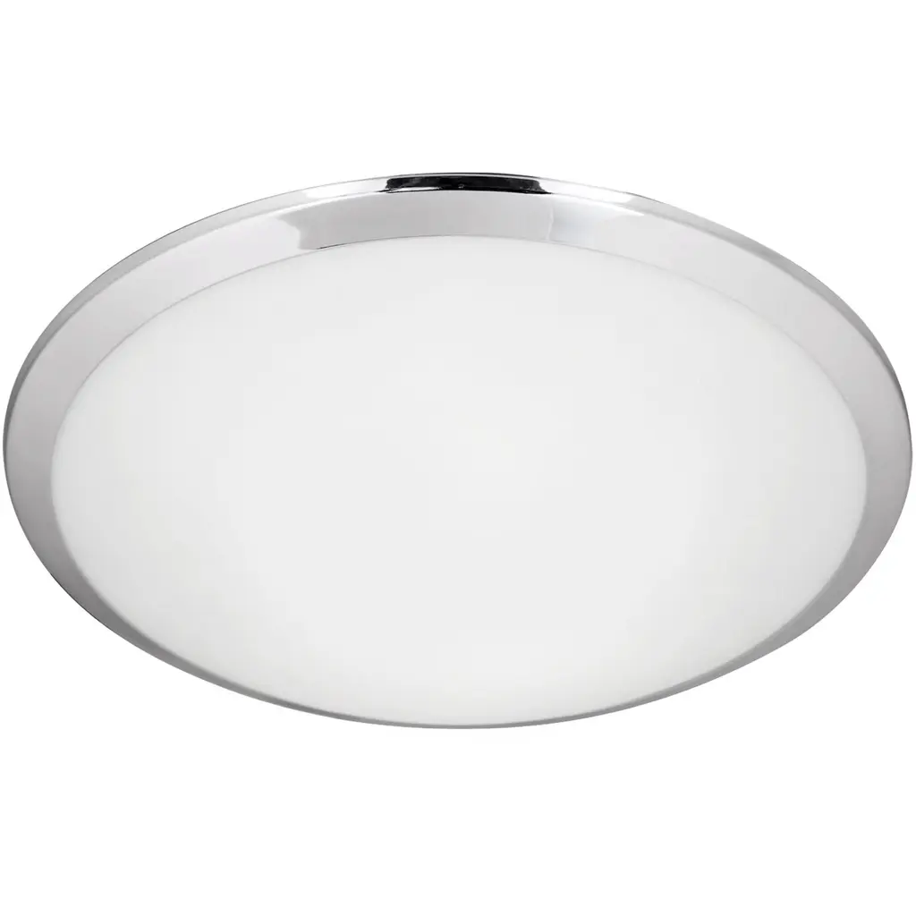 Single lamp LED flush mount ceiling fixture with round white opal glass. Metal details available in black, brushed nickel, chrome finish or brushed gold finish and is equipped with our powerful 120V AC LED technology