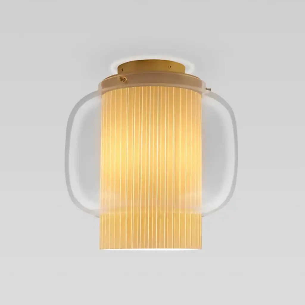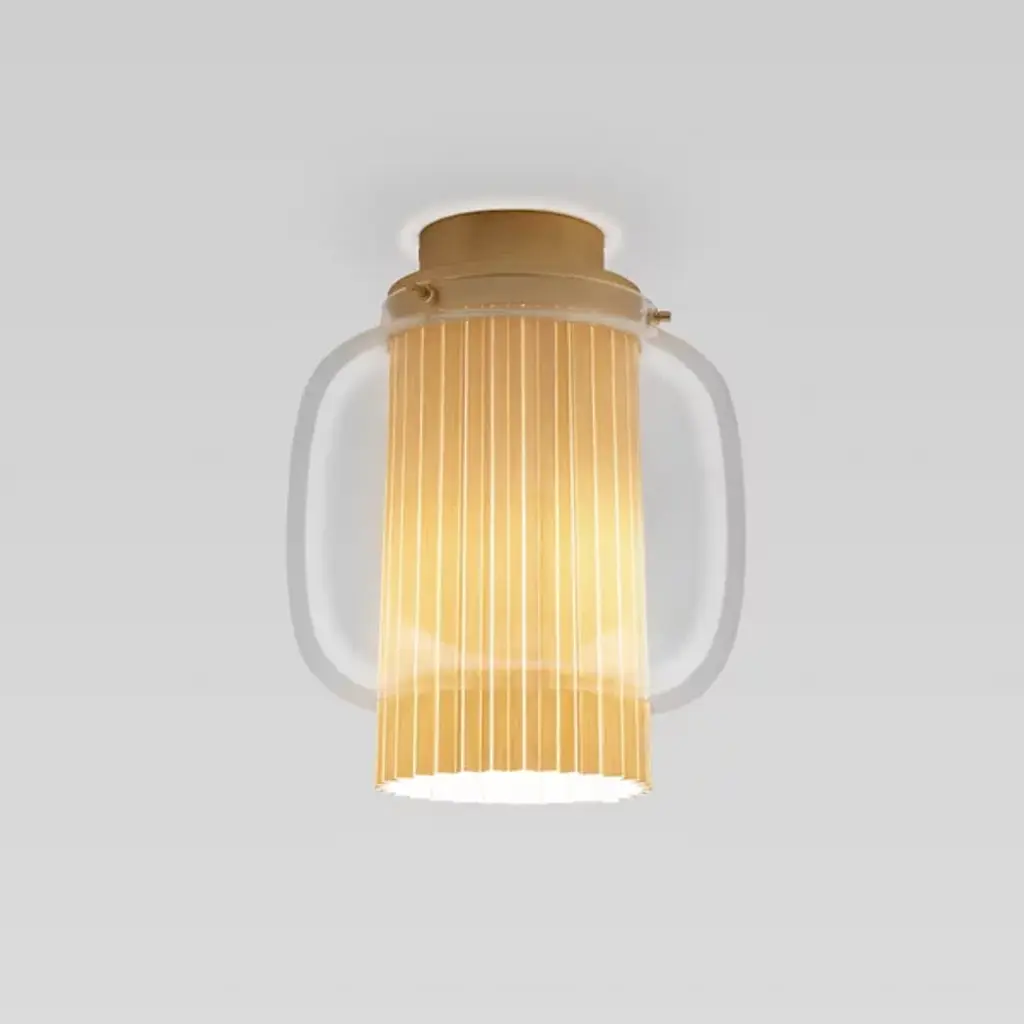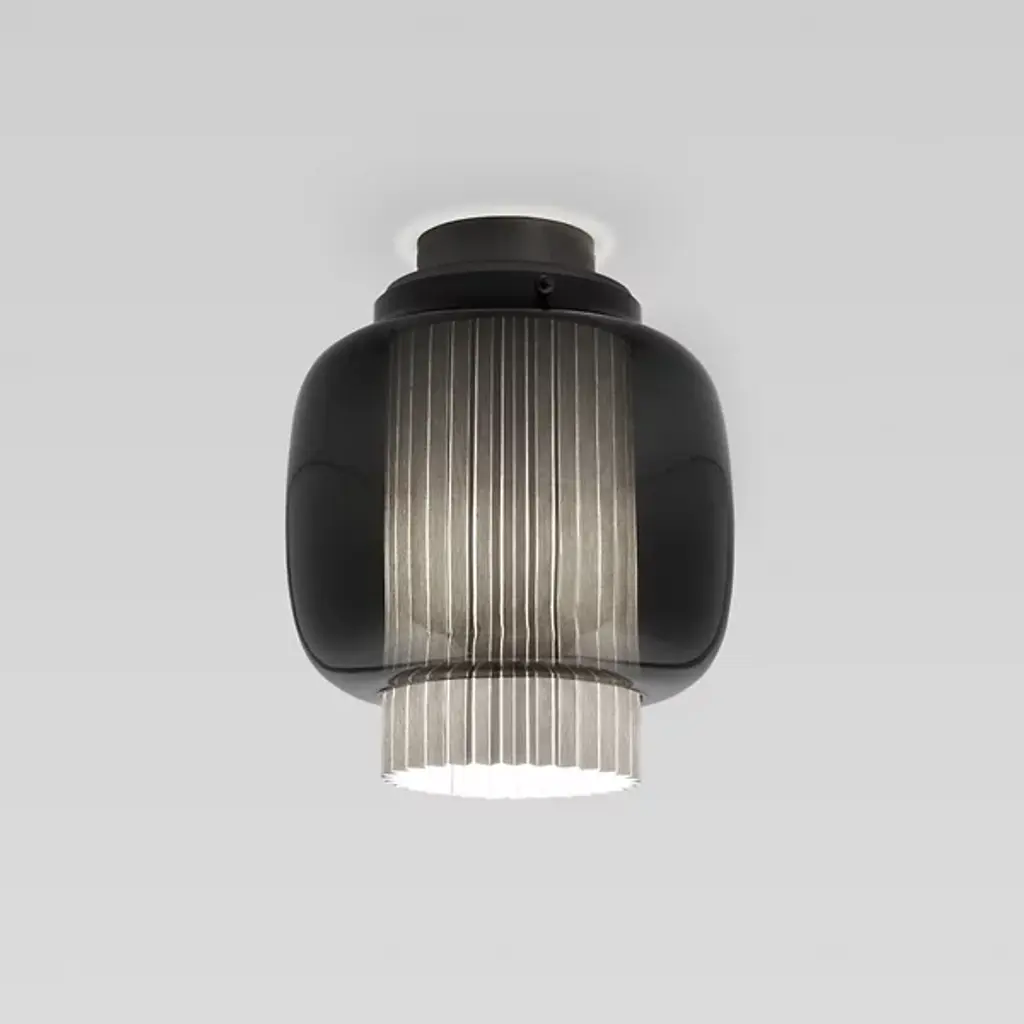 The Manila C Flushmount from Parachilna transforms its environment with a welcoming artisanal touch. An elegant blend of artisanal blown glass with a plissé-textured diffuser, its two-tone design descends from a stepped circular ceiling mount. Designed by Sebastian Herkner, it takes its name from the Spanish "Mantón de Manila," a silk shawl utilized by flamenco dancers. The fixture has a sense of motion, even when standing still, evoking the twirls and swirls of motion.