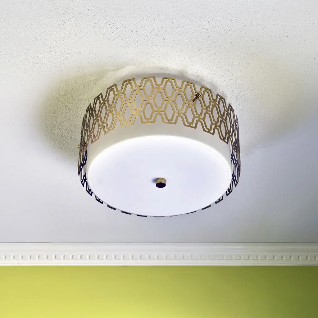 Marcel Led 16 Inch Modern Brass Flush Mount Ceiling Light, Geometric Framing