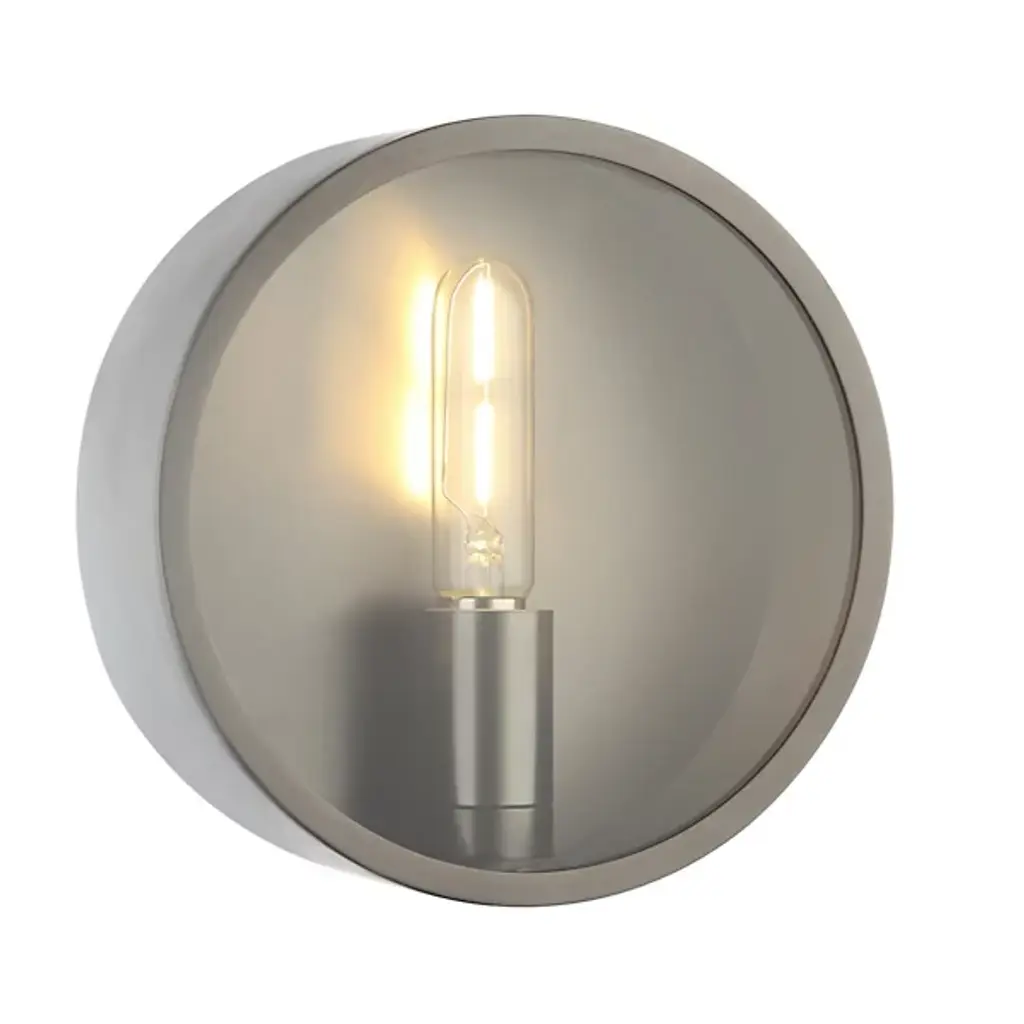 A chic, refined take on the traditional lantern. Level up the stylish character of your modern or contemporary space with the Marco Round Wall / Flushmount from Matteo Lighting. This piece’s secure mounting lets it serve you over the ceiling or against a wall. In either setting, the piece looks natural as it fashions itself with a low-profile circular form. It suggests classic lanterns with a glass panel for a reflective touch. A pair of lamp holders define the 21st century aesthetic of the piece with precise shape and a sleek surface. Pair the luminaire with tall, vintage-style bulbs for a spacious golden glow.