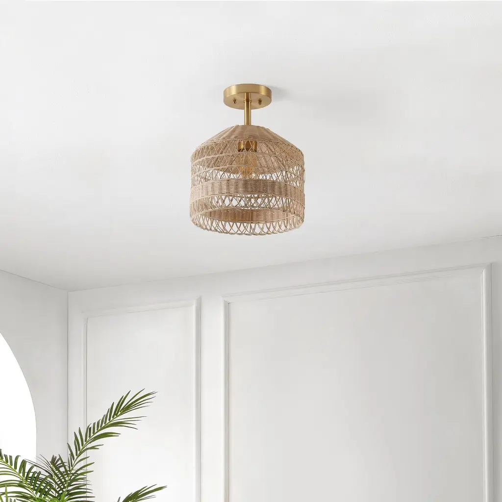 Lend a warm and artisanal update to your ceiling light with our flush mount. The intricate and skillfully woven patterns of the canopy catch the eye for statement appeal. The fresh texture and artisanal flair of the flush mount lend a breezy and laid-back air to any room. It is accented with gleaming gold hardware to bring a refined yet relaxed style to your home. Creating a stunning play of light and shadow, our flush mount remains perfect for styling and illuminating your kitchen, bathroom, dining area, or bedroom.