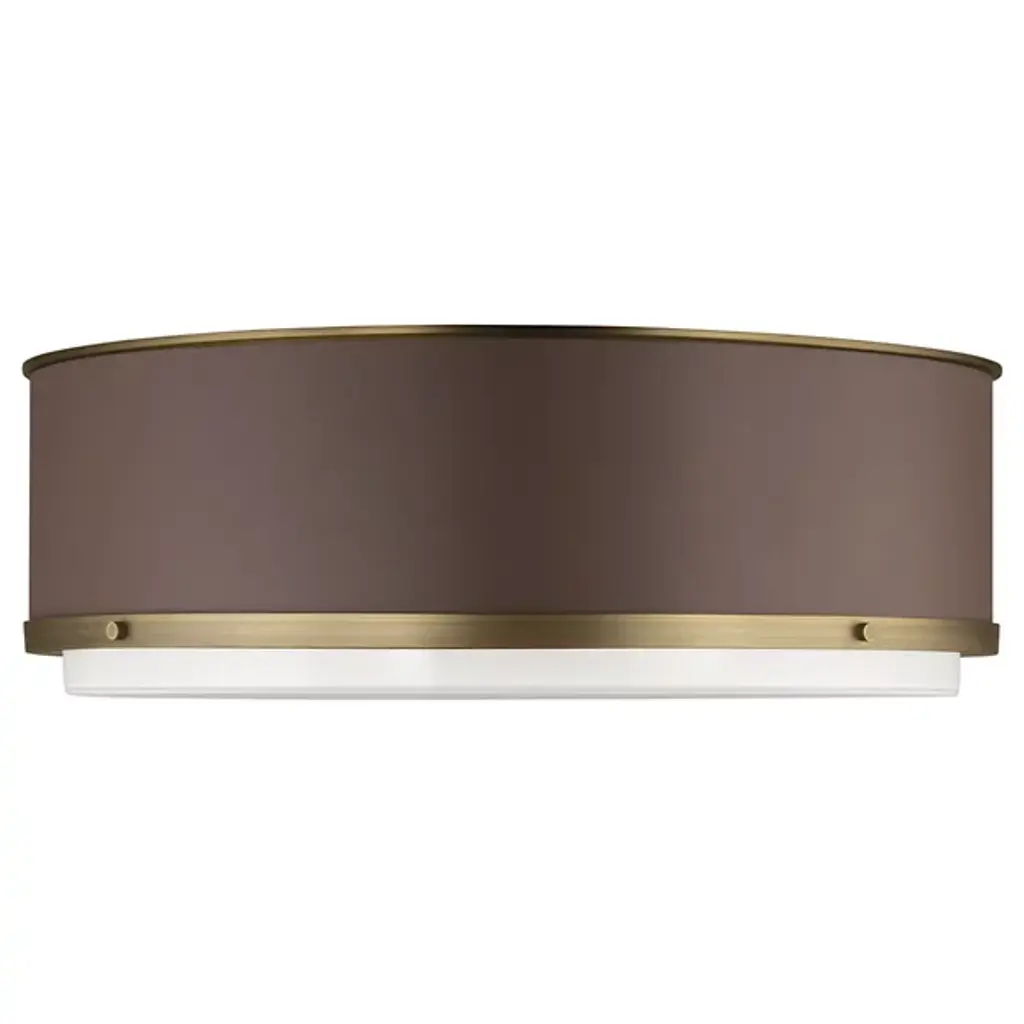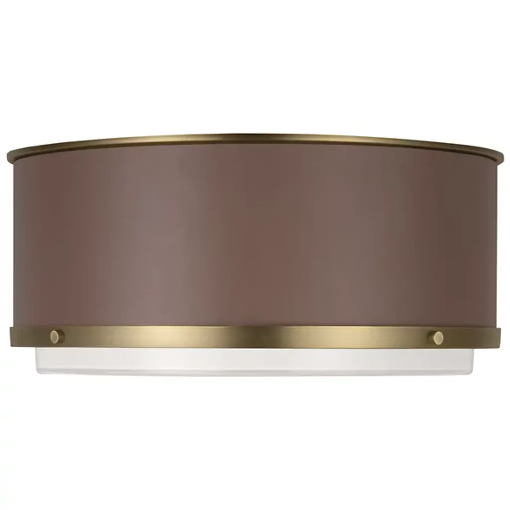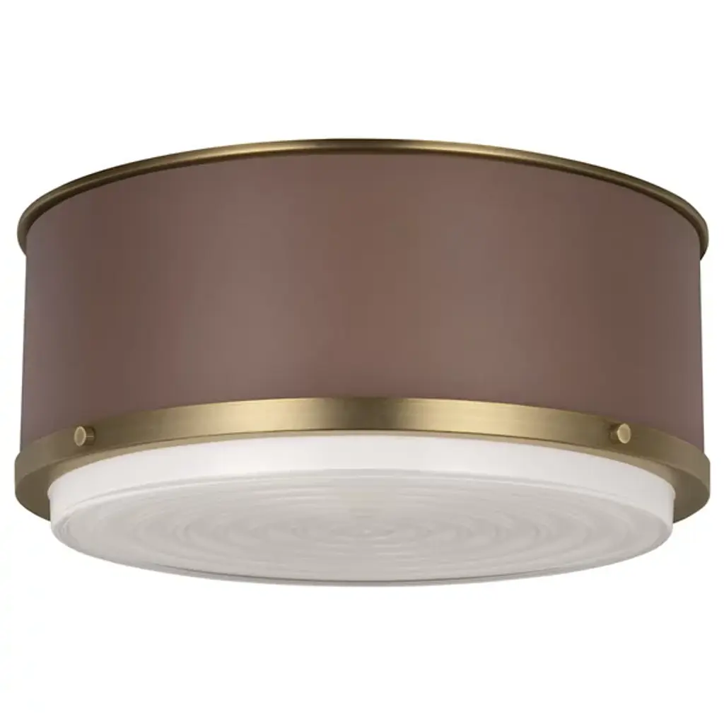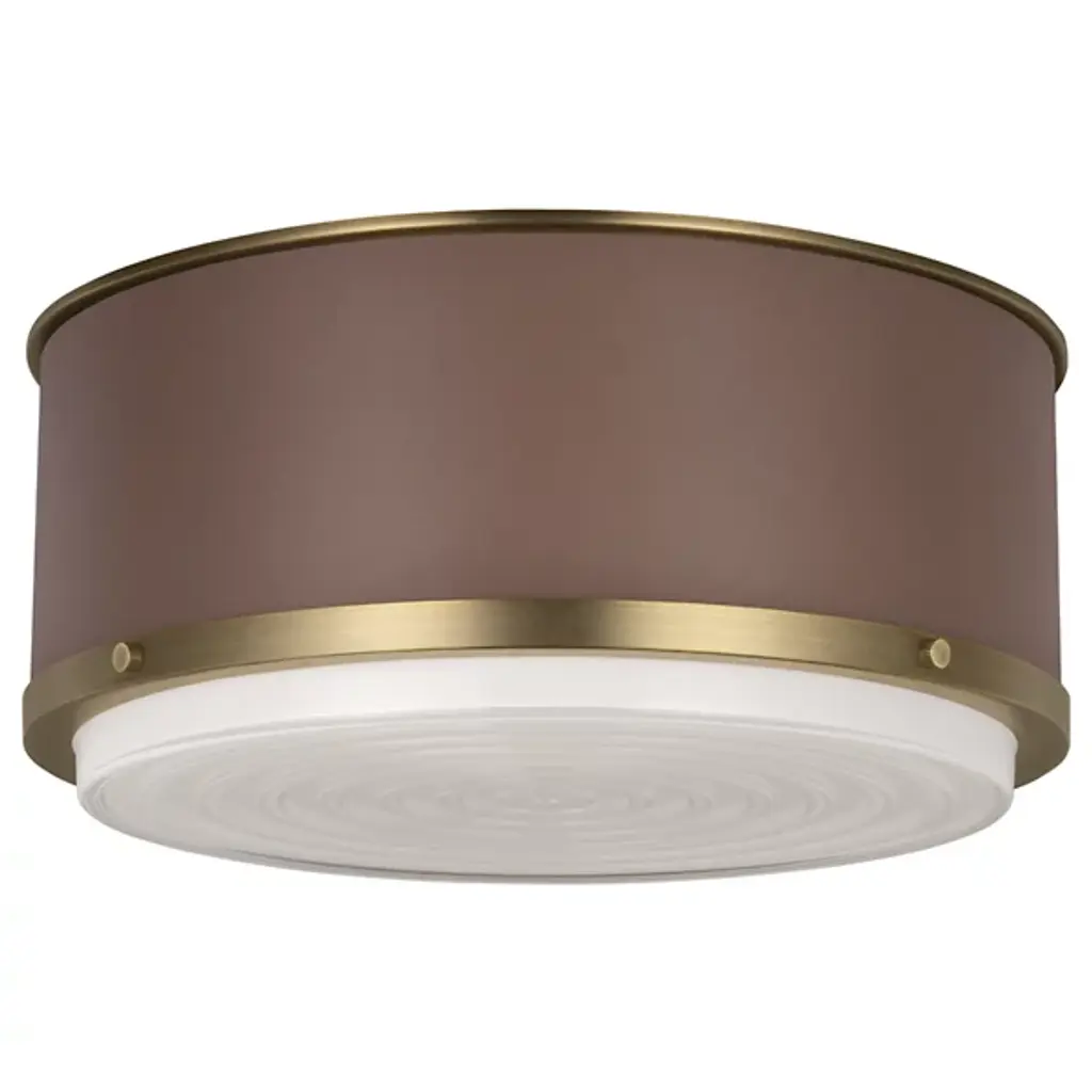 The Marlowe Flushmount from Visual Comfort Studio features a hand-stitched leather-wrapped cylindrical body that adds textural interest to ceiling spaces. A creation from the Lauren Ralph Lauren collection, this fixture pairs its leather exterior with a silkscreen glass diffuser that provides even, glare-free illumination. Fully dimmable with standard medium base compatibility, the Marlowe Flushmount comes with installation hardware for immediate ceiling mounting in living areas, entrances, foyers, or kitchens.