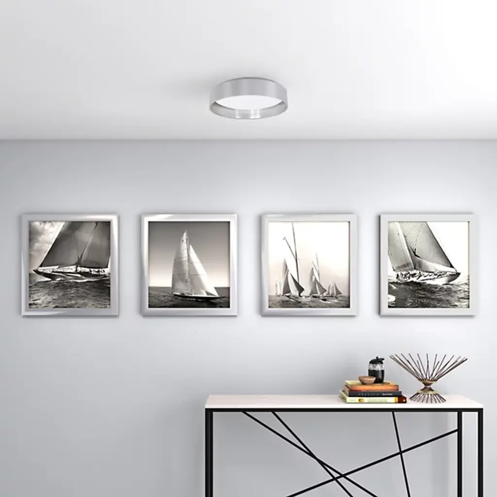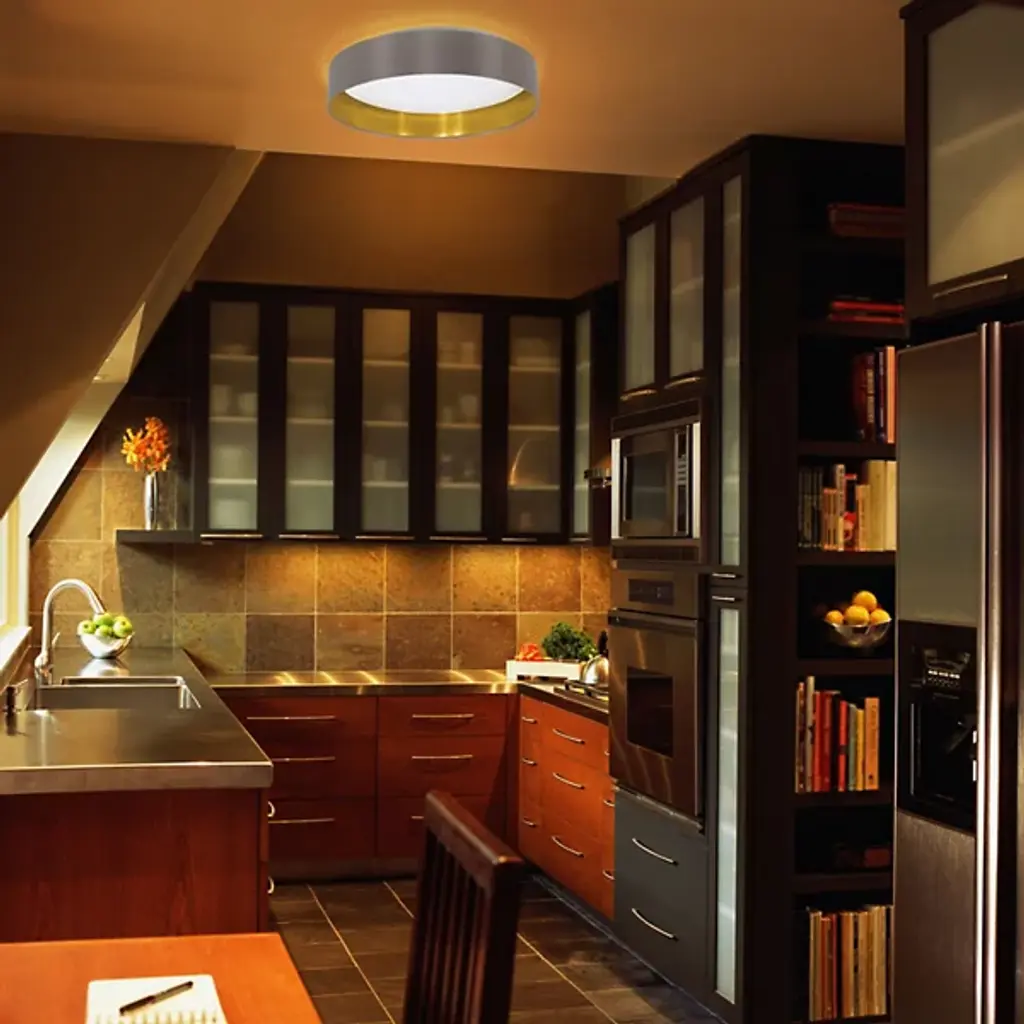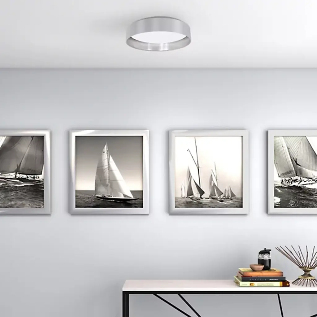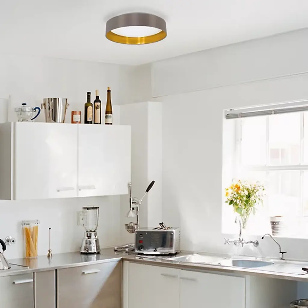 The Eglo Maserlo LED Flushmount is a simple lighting option with high contrast that also utilizes the latest in lighting technology. The steel band features a contrasting finish inside, with a plastic diffuser in the middle that dispenses the illumination. Discreet with a little punch, this modern ceiling light will create a lit atmosphere with energy efficiency and style.
