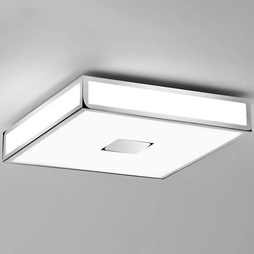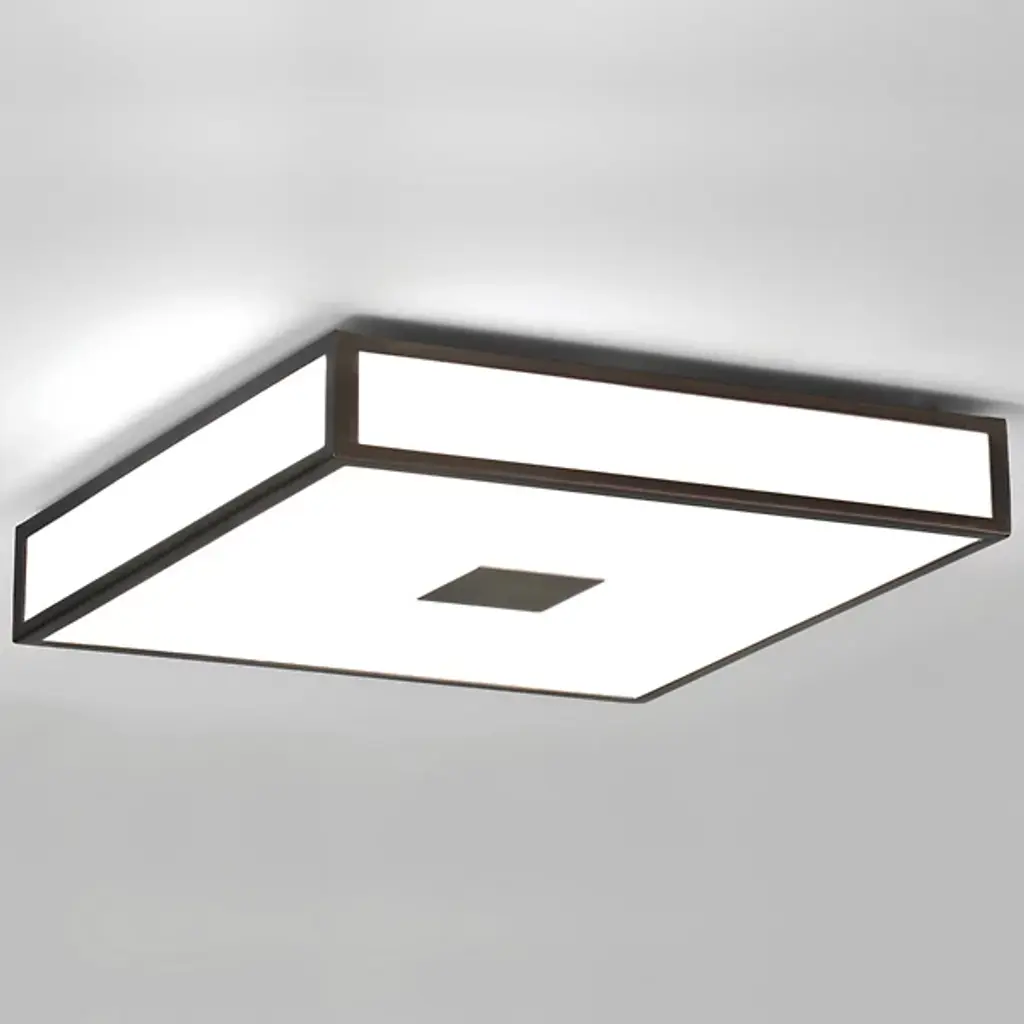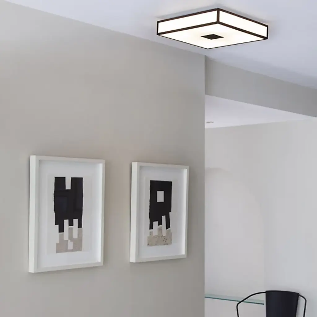 Bring a bold splash of light to your indoor areas with the Mashiko 400 Square Flushmount from Astro Lighting. A sleek, contemporary fixture, it starts by suspending a sharp-cornered frame of mild steel from a square canopy, setting damp-listed lamping beneath a diffuser of white opal glass. The translucent texture gentles glare from the lamping into a more natural ambiance easily able to illuminate a wide range of spaces, including kitchens and bathrooms.