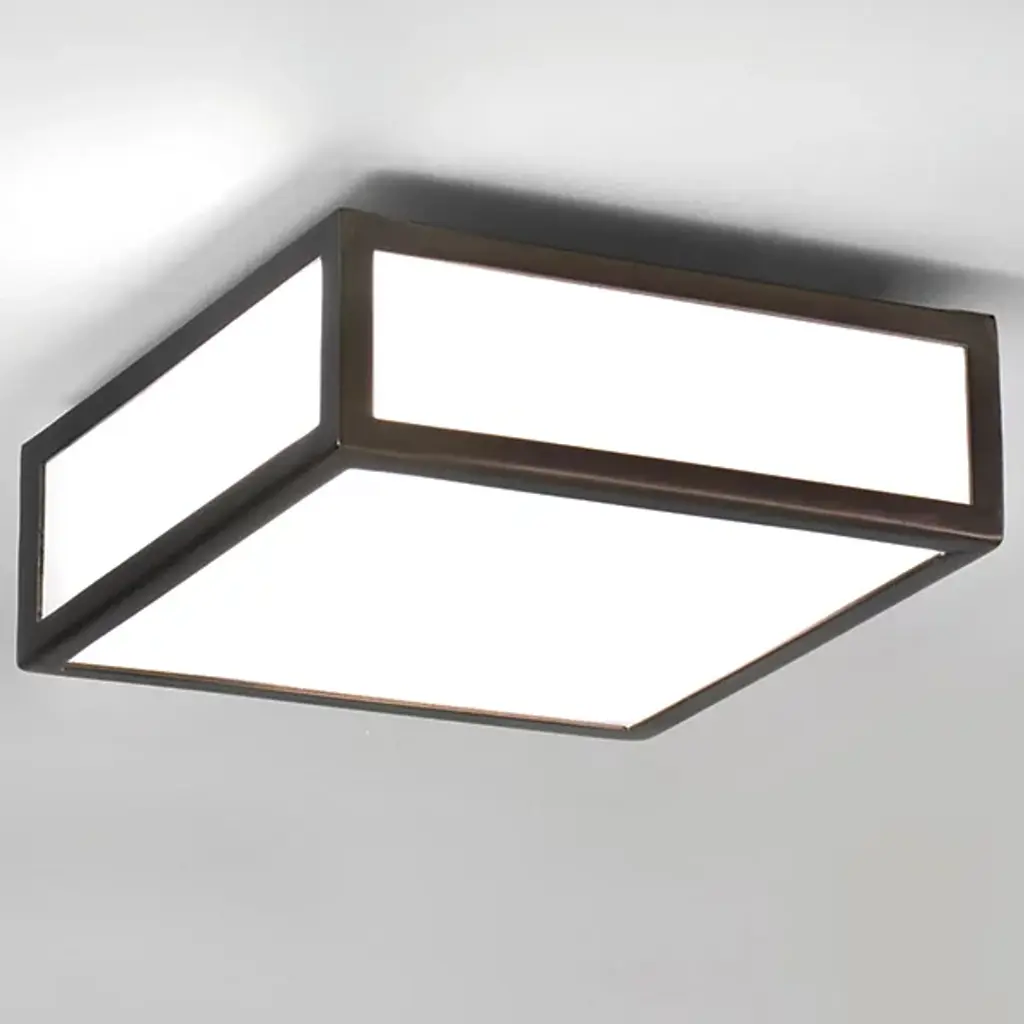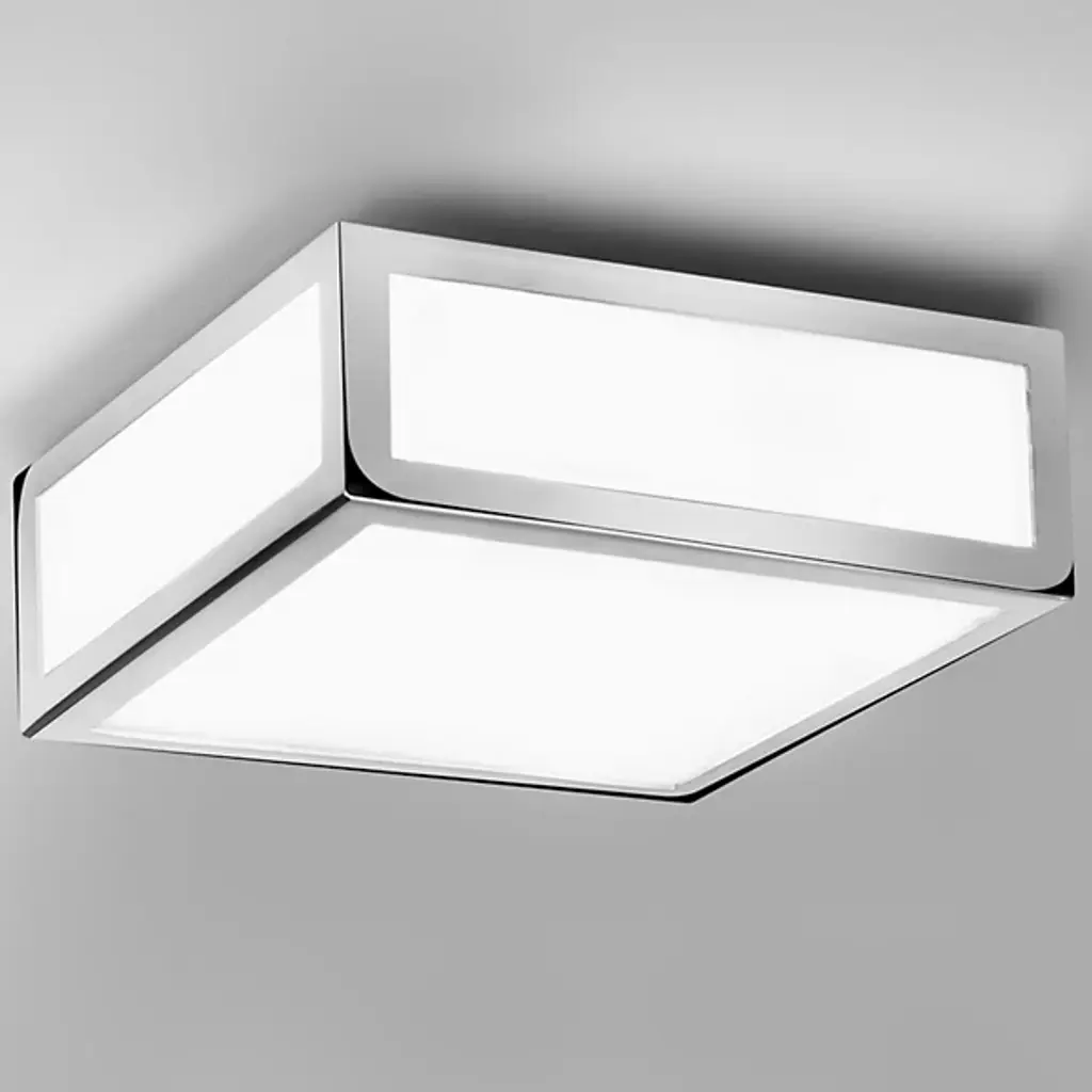 Unleash a bright wash of light anywhere in your home with the straight square planes of the Mashiko Square Bath Wall / Flushmount from Astro Lighting. Starting with a robust square mount, it sets damp-listed lamping underneath a contemporary framework of mild steel, with rectangles on the sides supporting a square opening below. Each gap is filled by a flat pane of white glass, offering a contrast with the frame while gentling any glare into a pleasant ambiance around the fixture.