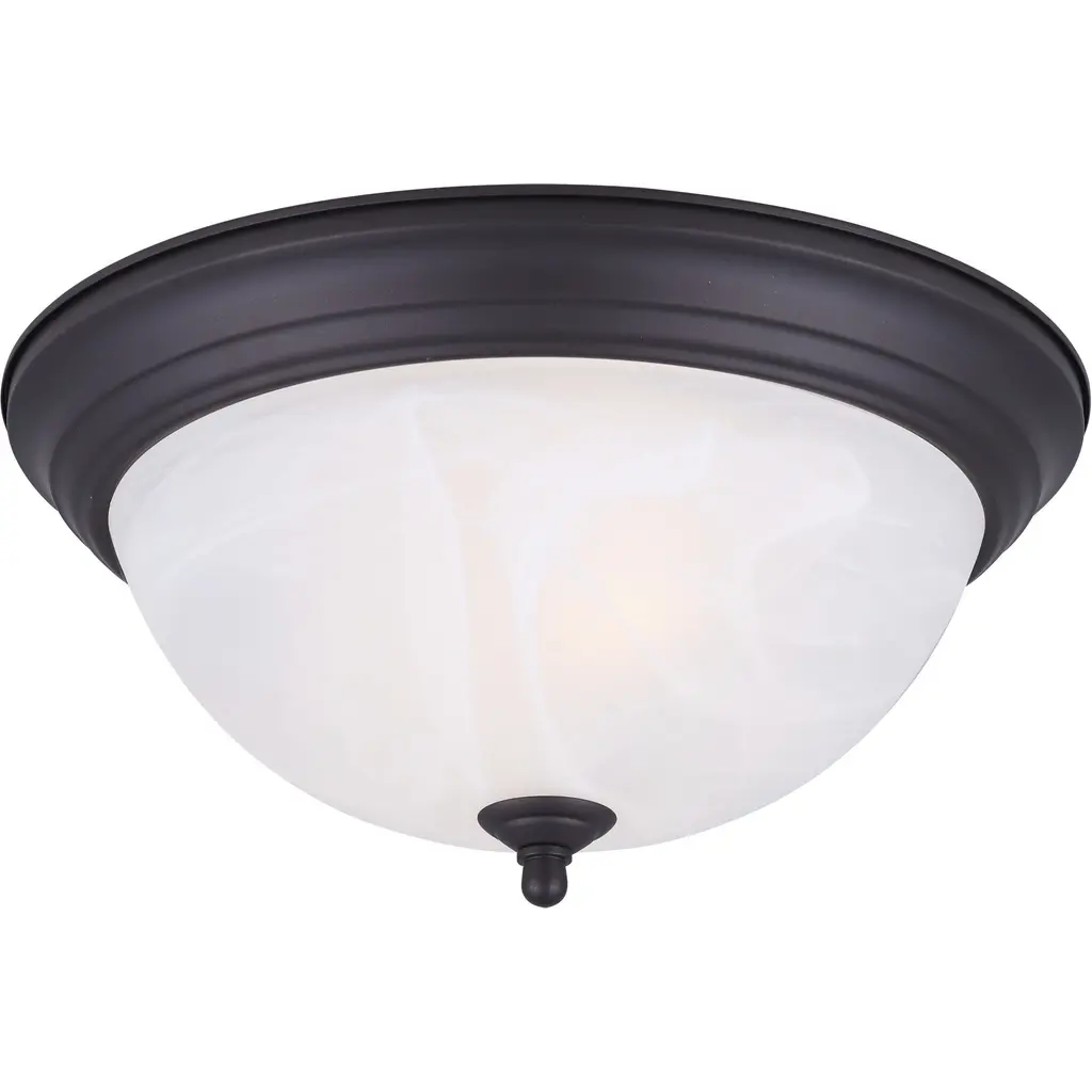 Maxim Lighting's commitment to both the residential lighting and the home building industries will assure you a product line focused on your lighting needs. With Maxim Lighting you will find quality product that is well designed, well priced and readily available. Dimmable: Yes Shade Included: Yes Material: Steel, Finish Color: Oil Rubbed Bronze, Width: 13.5", Height: 6", Length: 13.5", Hanging Method: Flush, Lamping Type: Incandescent, Number Of Bulbs: 2, Wattage: 60 Watts, Dimmable: Yes, Moisture Rating: Damp Rated