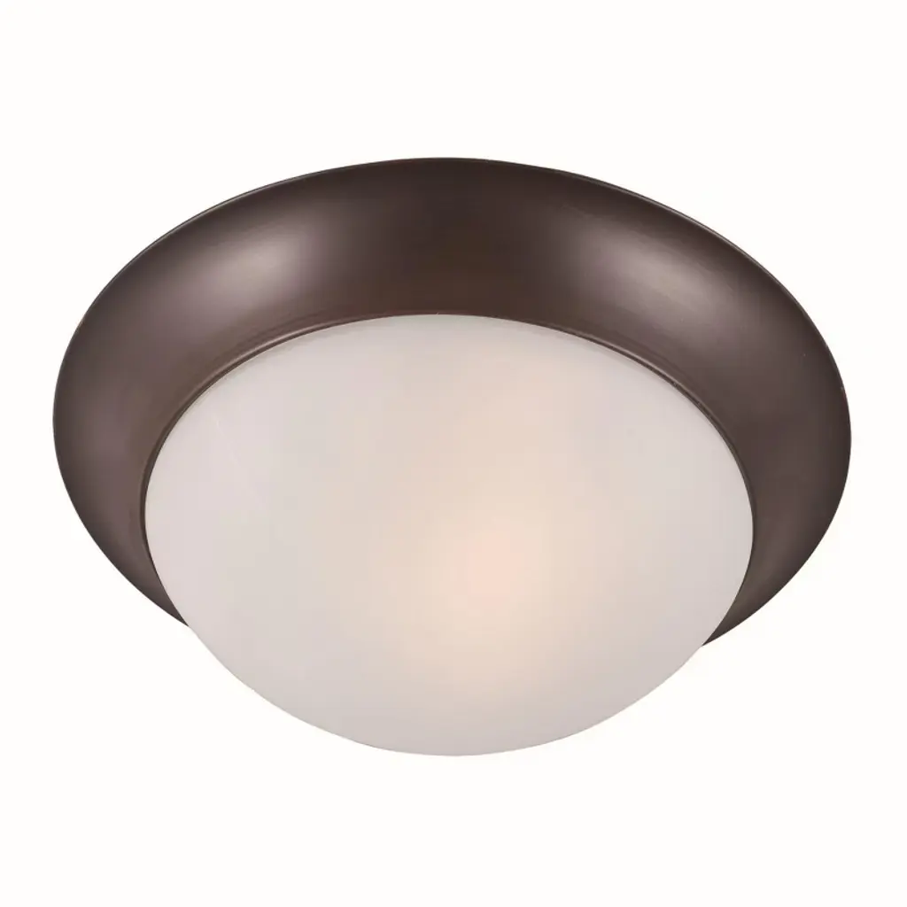 Maxim Lighting's commitment to both the residential lighting and the home building industries will assure you a product line focused on your lighting needs. With Maxim Lighting you will find quality product that is well designed, well priced and readily available. Dimmable: Yes Shade Included: Yes Material: Glass, Finish Color: Oil Rubbed Bronze, Width: 14", Height: 5", Length: 14", Hanging Method: Flush, Lamping Type: Incandescent, Number Of Bulbs: 2, Wattage: 60 Watts, Dimmable: Yes, Moisture Rating: Damp Rated