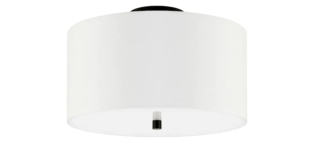 Truncated tapered cones of linen shades diffuse light from an LED ring within them. The LED lighting offers ample illumination that is softly diffused behind the shade. A two-pronged fork detail supports the ring within further modernizing this transitional look. Available in Natural Aged Brass with an Off-White Linen shade or Matte Black with a White Linen shade, these pieces conveniently coordinate with most interiors.