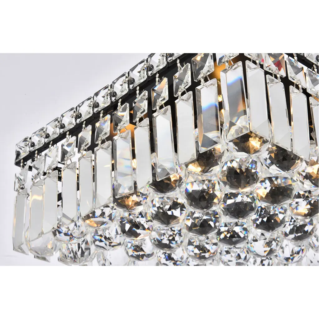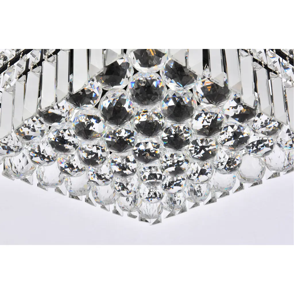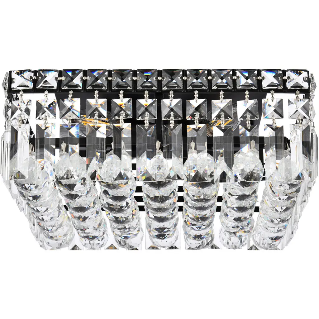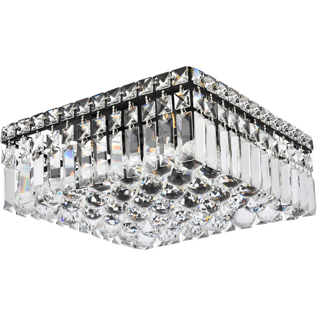 A riot of shapes and textures, Maxime collection flush mounts sparkle in a mosaic of crystal tiles. Square and rectangular precision-cut crystals form the flamboyant exterior while faceted crystal balls create a bubbled effect for light to shine through beneath. Available in a black or chrome finish with clear crystals, these lamps are a luxurious addition to a kitchen, stairwell, foyer, or living room.