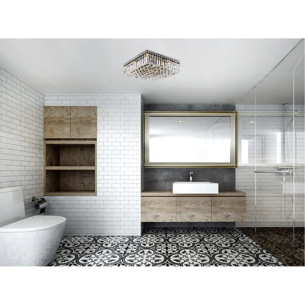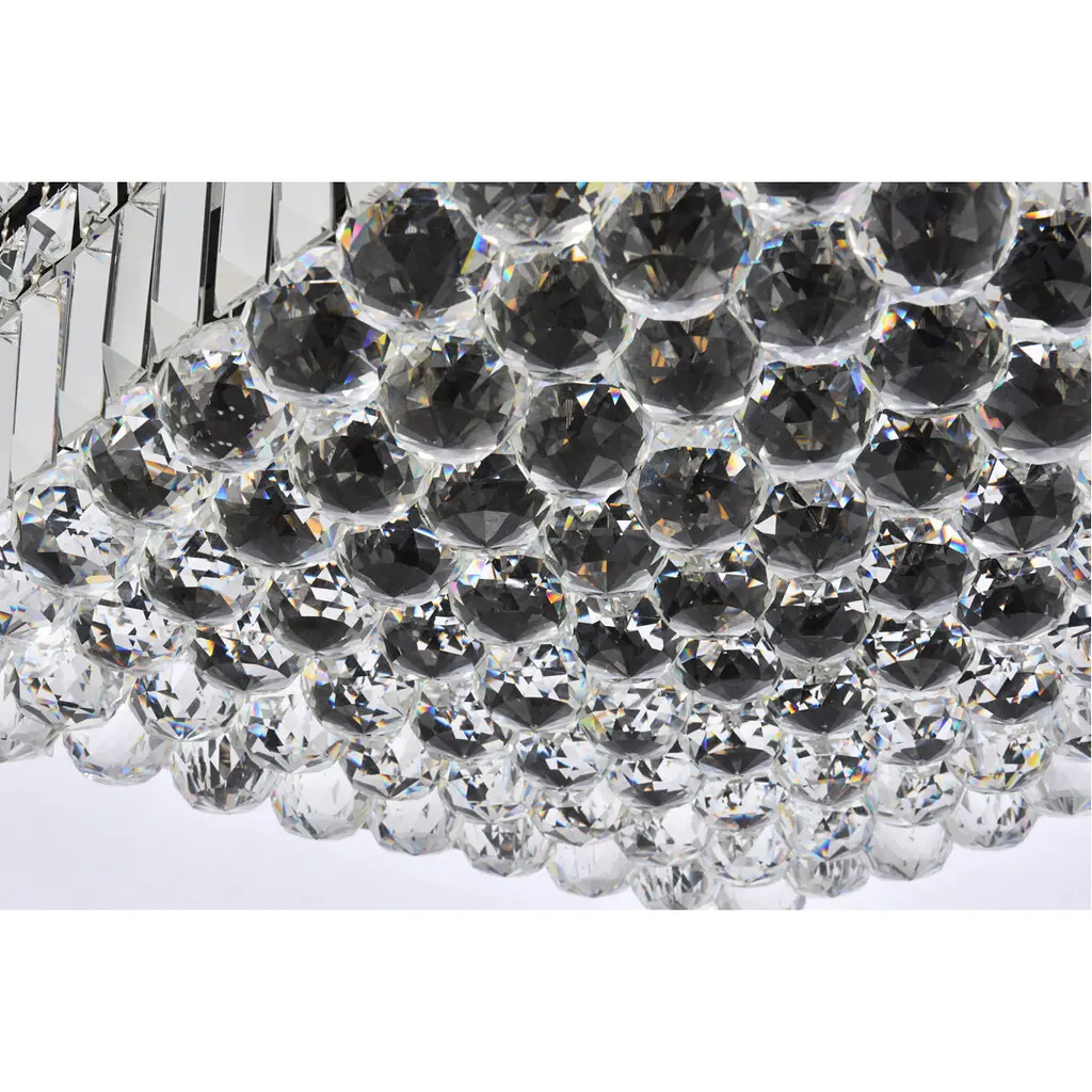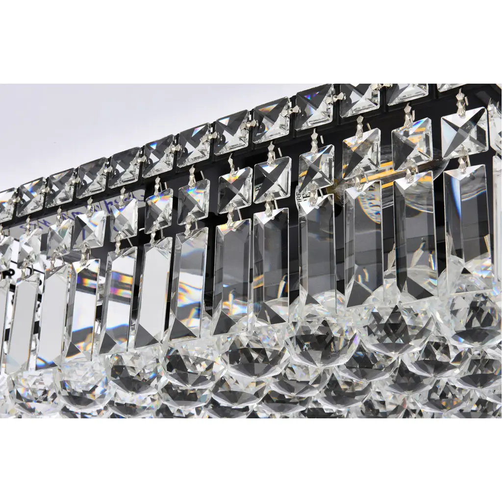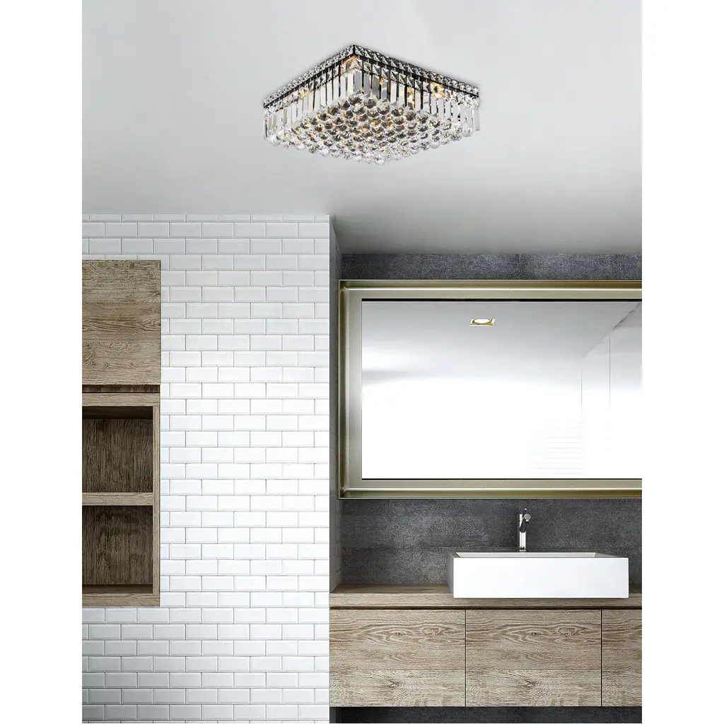 A riot of shapes and textures, Maxime collection flush mounts sparkle in a mosaic of crystal tiles. Square and rectangular precision-cut crystals form the flamboyant exterior while faceted crystal balls create a bubbled effect for light to shine through beneath. Available in a black or chrome finish with clear crystals, these lamps are a luxurious addition to a kitchen, stairwell, foyer, or living room.