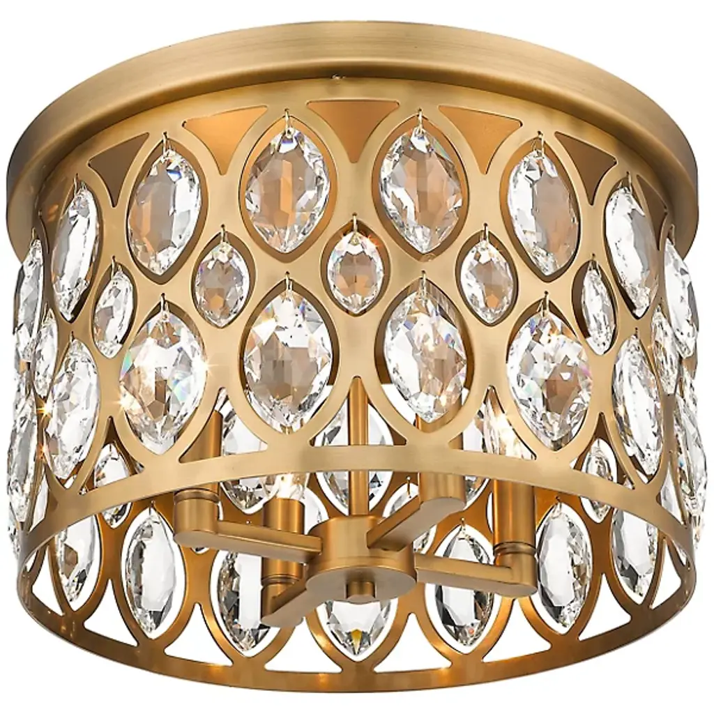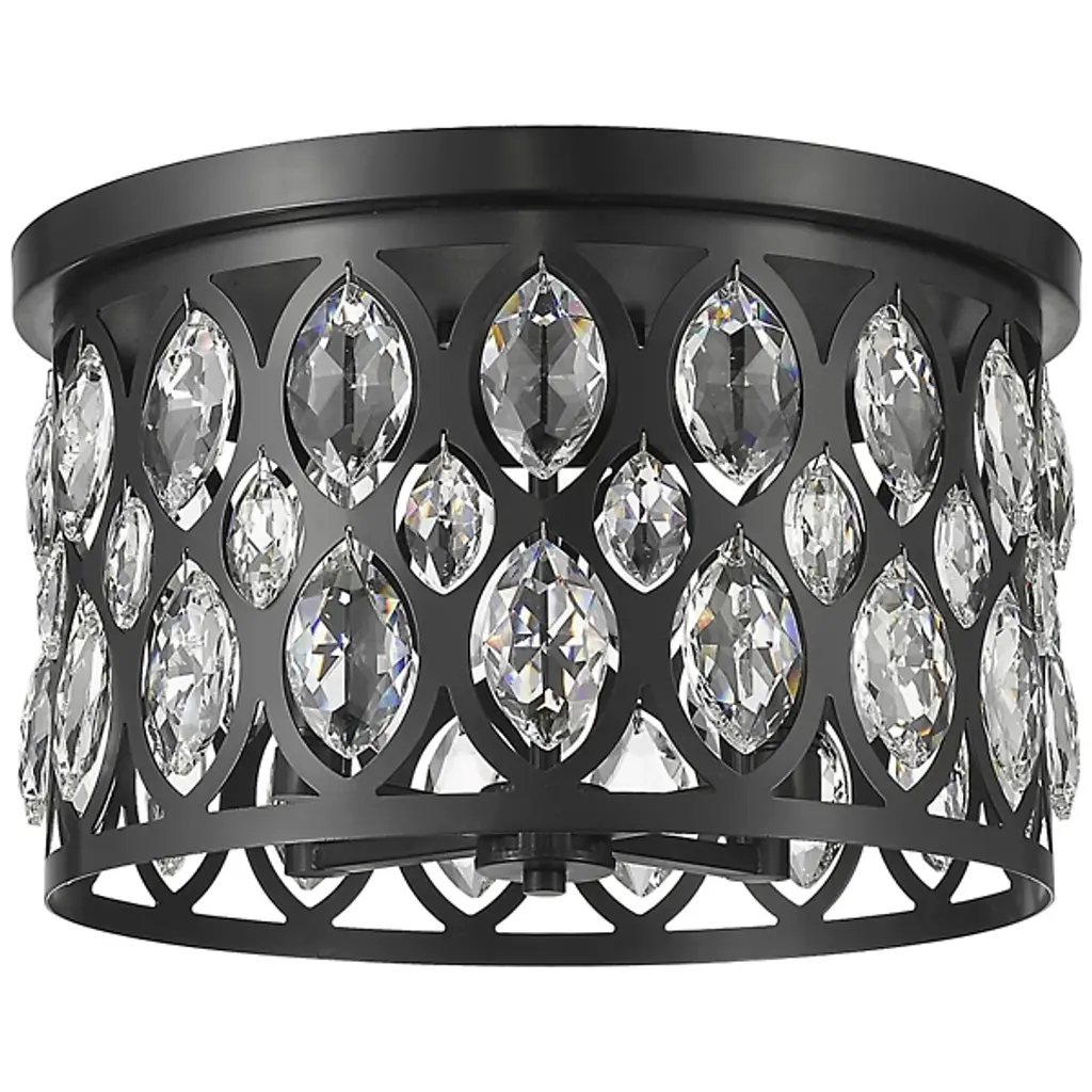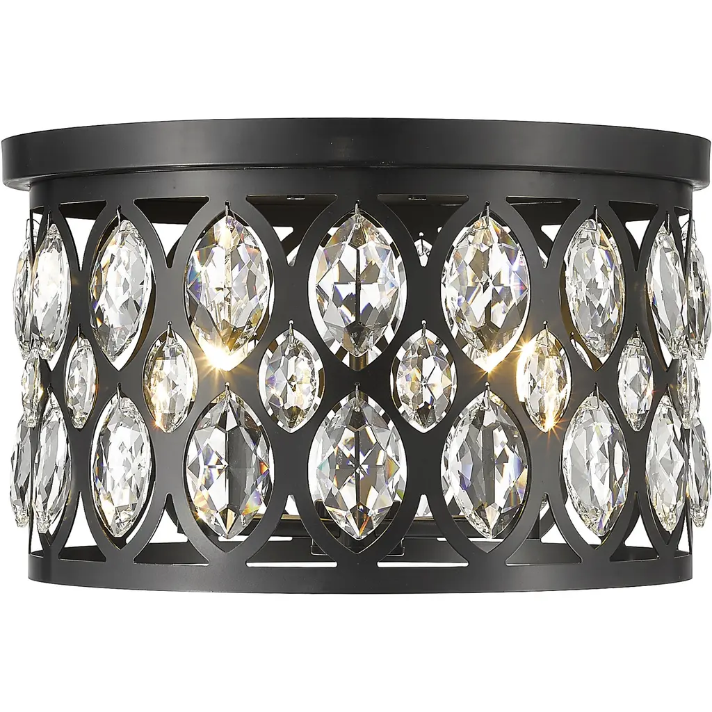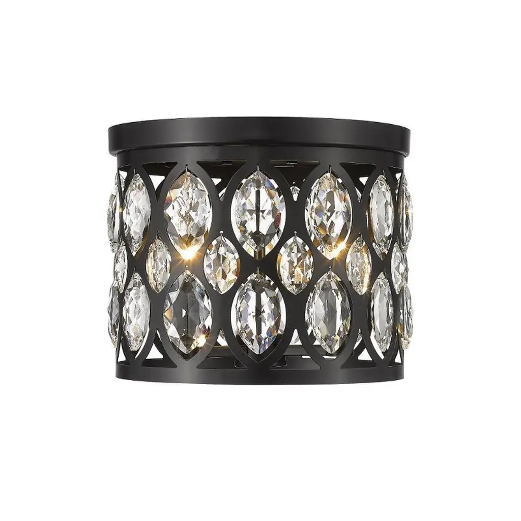 The Minkley Flushmount from Alder & Ore is an ideal addition to the foyer or hallway of a Hollywood Regency-style home. The steel shade, adorned with captivating ellipse-shaped cutouts and sparkling clear crystal pendants, creates a dramatic contrast that demands attention. Three candelabras hidden behind the crystals provide both striking aesthetics and a mesmerizing fractalized illumination, casting enchanting patterns along the walls and floor, elevating the ambiance of any space.