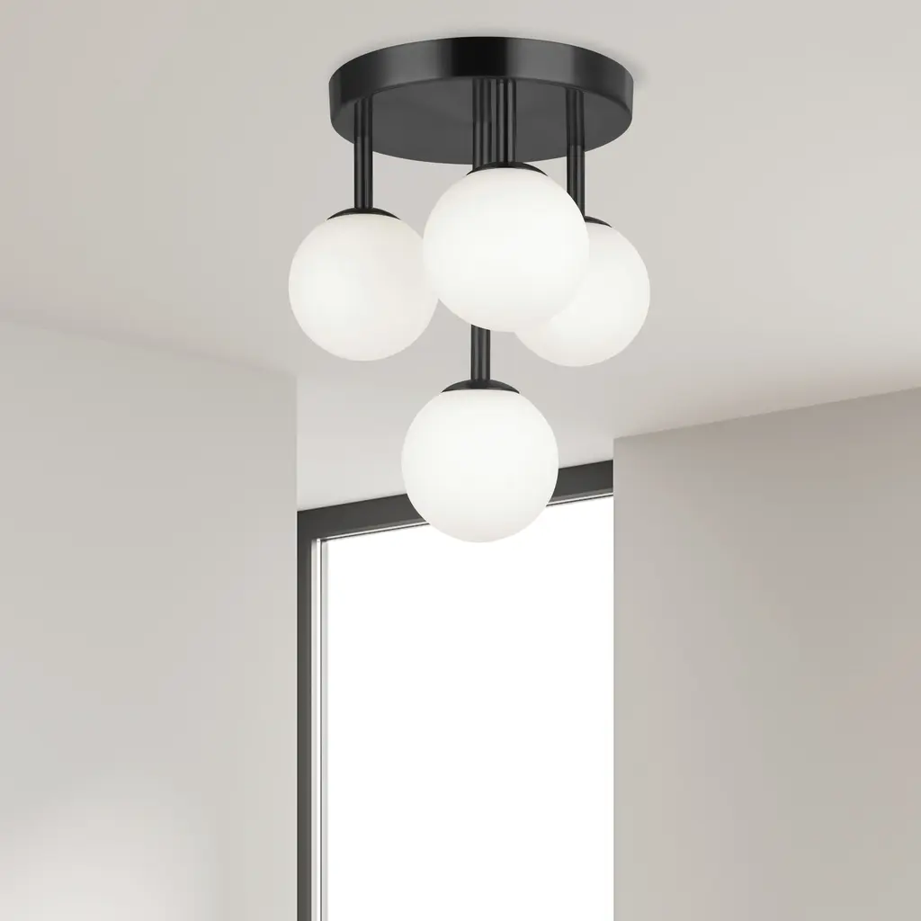 Megallan 4 Light 10.75 Inch Matte Black Flush Mount Ceiling Light