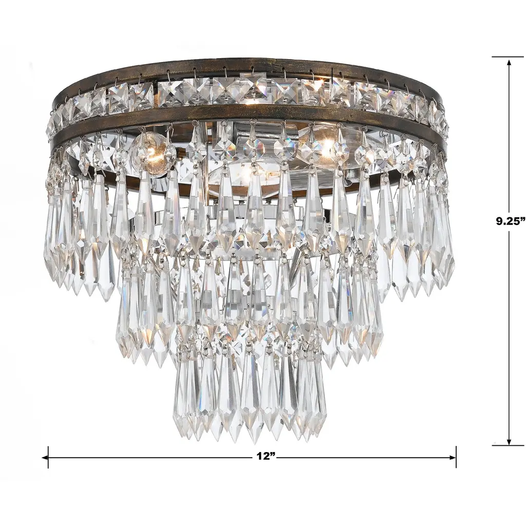 Mercer 3 Light Hand Cut Crystal English Bronze Flush Mount
