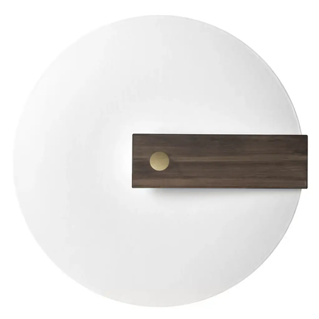 The Meridiana LED Wall / Flushmount by Hind Rabii features a captivating design inspired by the sundial. A large disk, symbolizing the sun, casts light through a clock-hand-like panel, creating a stunning contrast of light and shadow. Handcrafted by skilled artisans in Verviers, Belgium, each piece is carefully crafted and undergoes multiple inspections to ensure the highest quality. This unique design brings artistic flair and beautiful illumination to any space, making it a sophisticated lighting solution.
