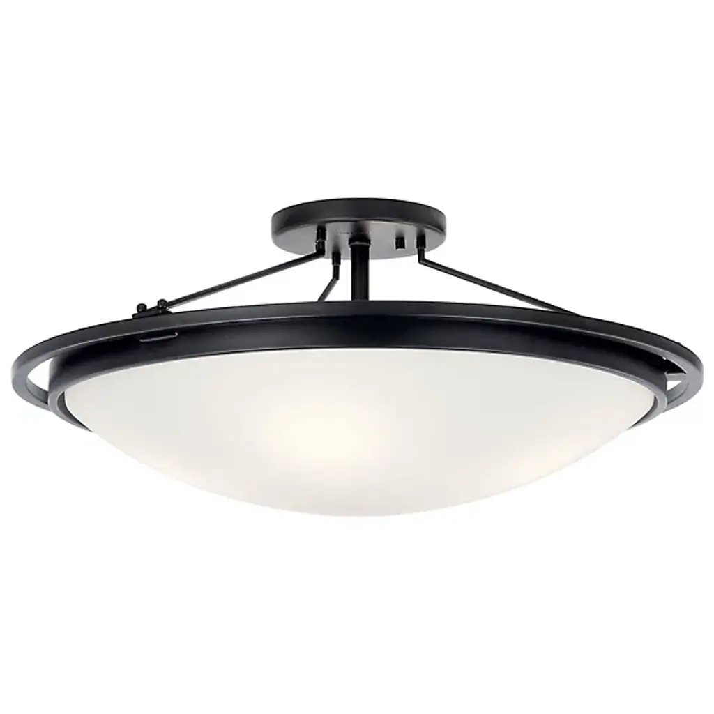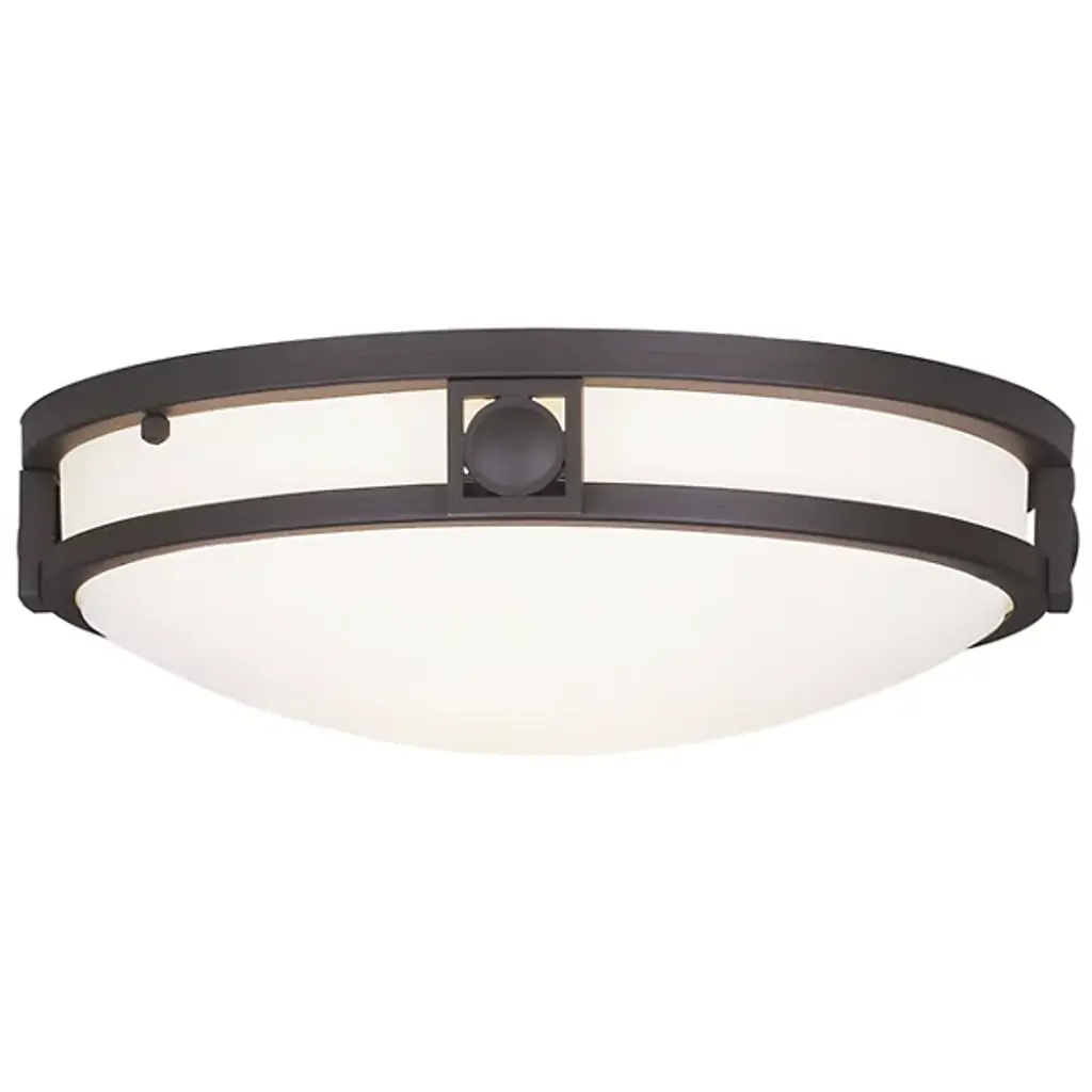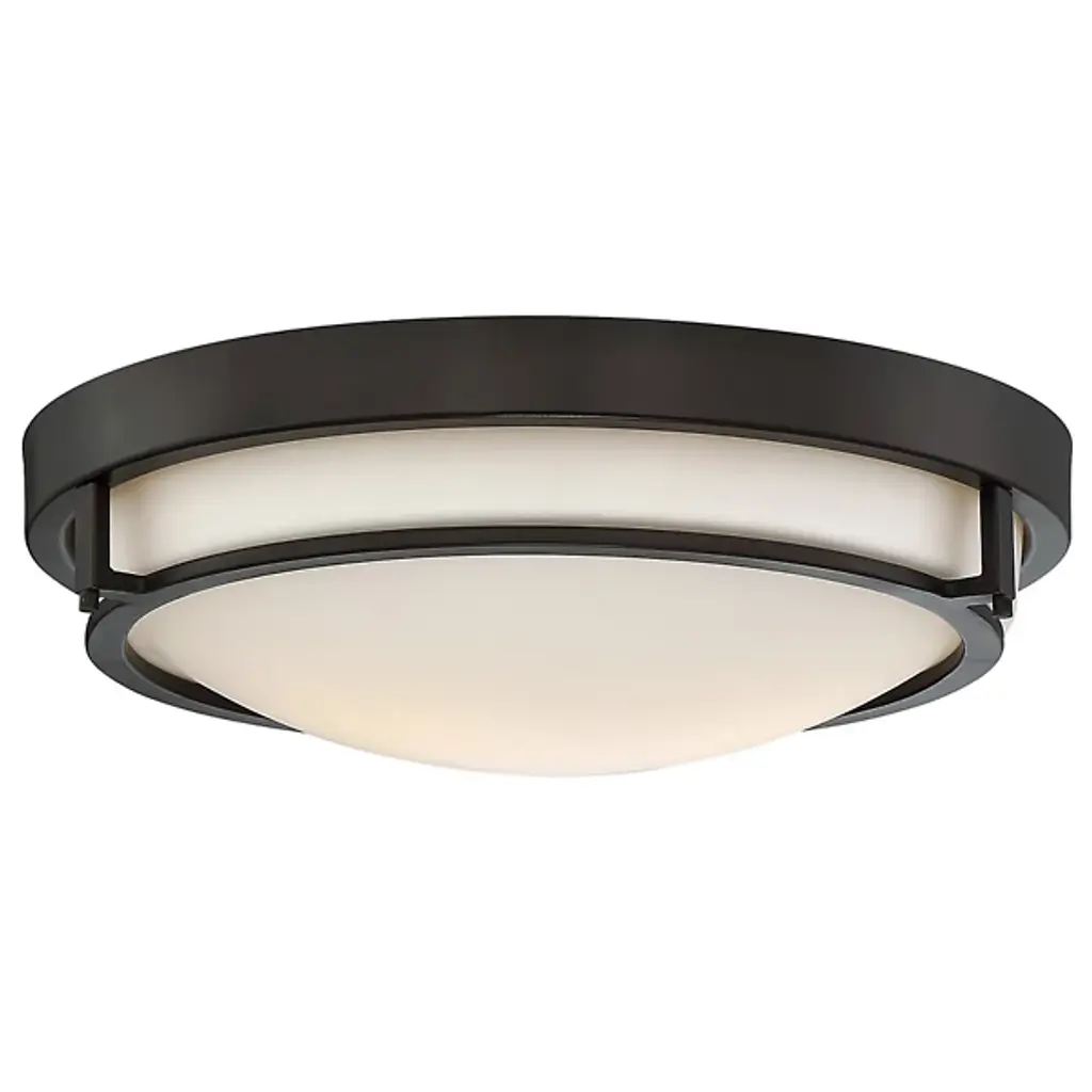 The Metra Large LED Flushmount by Hubbardton Forge adds a smooth and classic touch to living spaces. An Opal Glass shade is hand blown into a disk-like shape to provide an evenly diffused light with a minimalistic silhouette. A hand forged wrought Iron body begins with a round canopy that tiers downward with thin arms, connecting to a metal band that encircles the glass shade. Simple rivet detailing completes the look of this fixture, which matches well with a variety of décor.