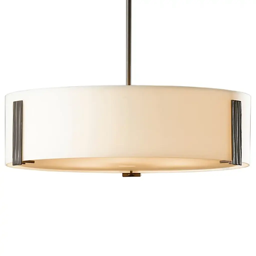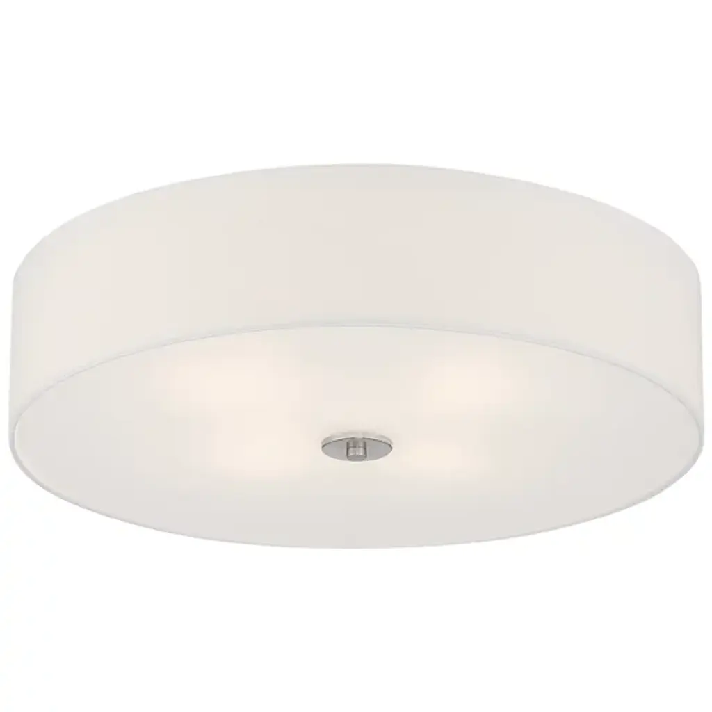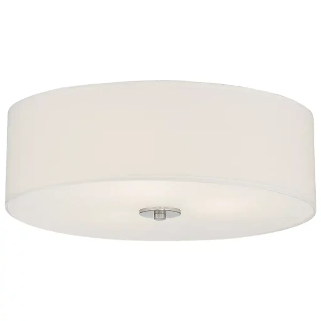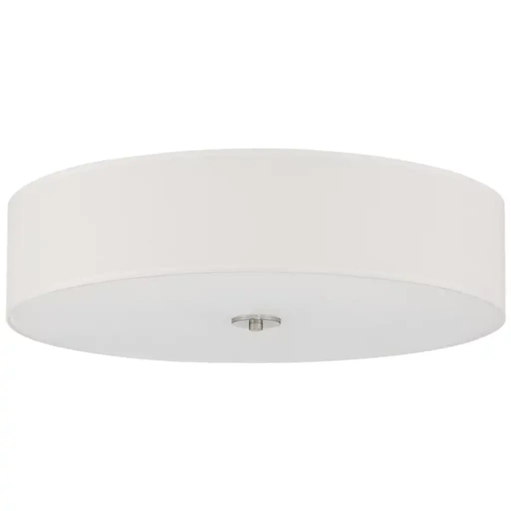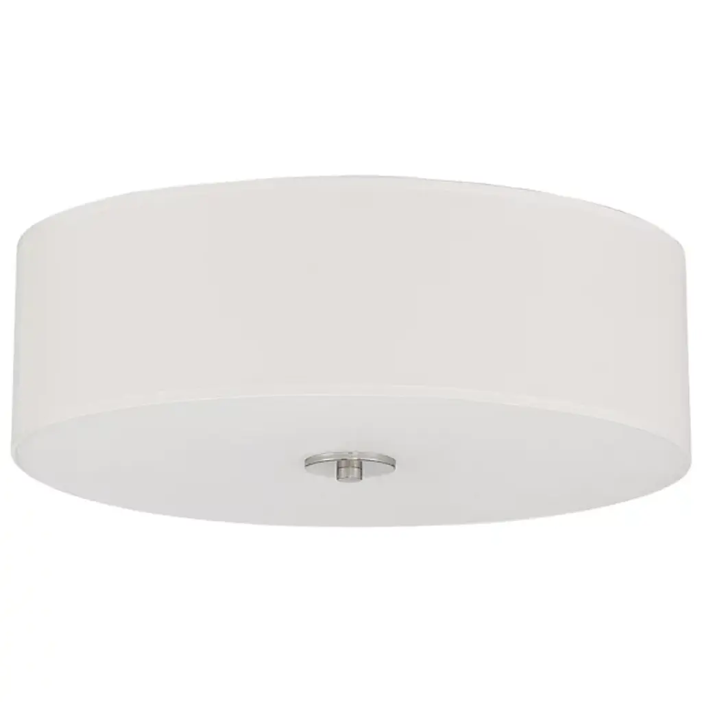 The Mid Town Flushmount by Access Lighting is designed with a cool and clean profile that combines energy efficient light with a classic shade. It's centered on a stylish and understated fabric hardback shade that is mounted close to the ceiling for a complete architectural character. This shade is accented with tasteful touches, such as a steel mount cap finial, to give it a presence in any room. It's a welcome touch for bedrooms, living rooms, kitchens, and more.