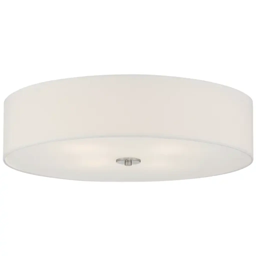 The Mid Town Flushmount by Access Lighting is designed with a cool and clean profile that combines energy efficient light with a classic shade. It's centered on a stylish and understated fabric hardback shade that is mounted close to the ceiling for a complete architectural character. This shade is accented with tasteful touches, such as a steel mount cap finial, to give it a presence in any room. It's a welcome touch for bedrooms, living rooms, kitchens, and more.
