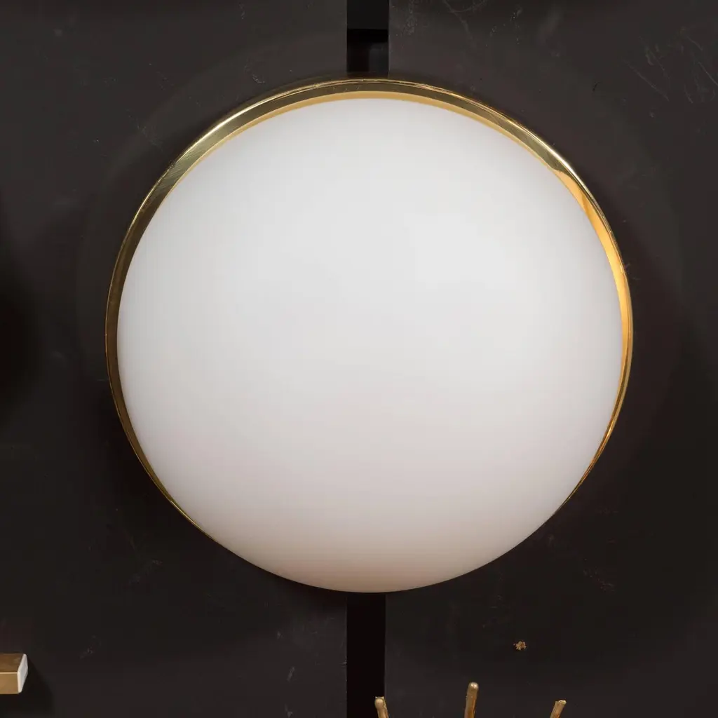 Midcentury Frosted Glass And Brass Flush Mount Fixture By Glashütte Limburg