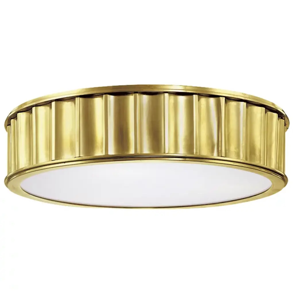 The Hudson Valley Middlebury Round Flushmount, rounded, waved and refined, creates balance in soft contemporary spaces that makes a room approachable yet striking. Its frosted glass diffuser provides an even, bright light for kitchens and living rooms, paired with a bold brass band that catches and bends the light for a truly stunning effect.