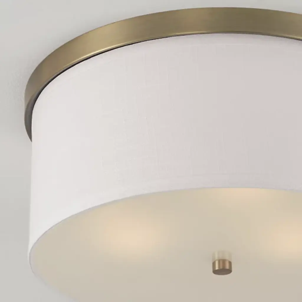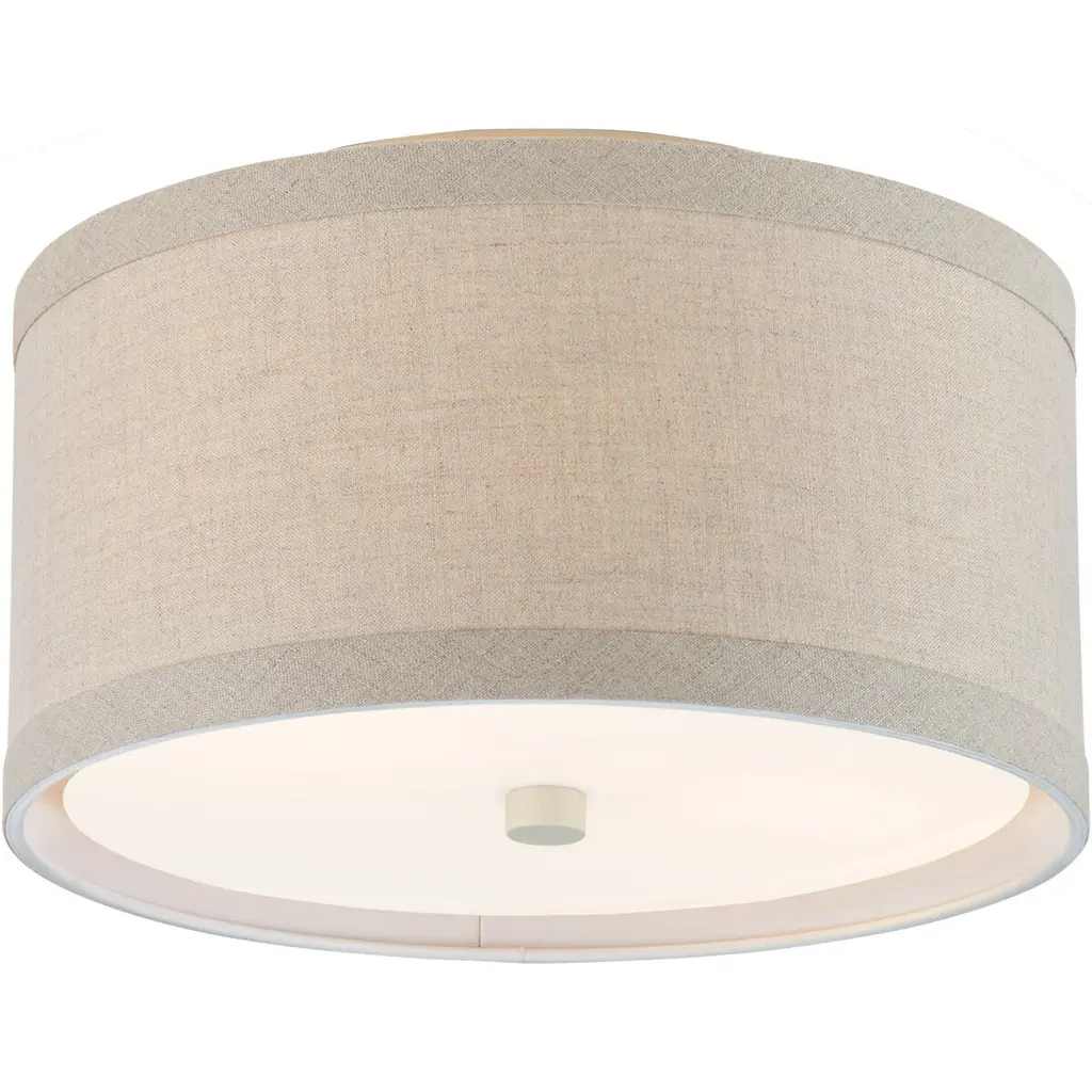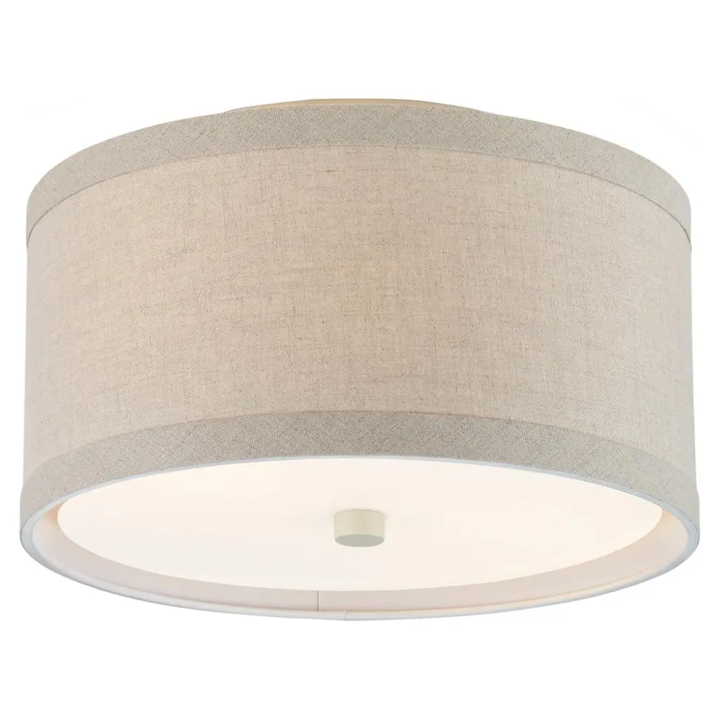 The Midtown Flushmount by Capital Lighting is excellent for creating ambient lighting in contemporary settings, combining simple style with good functionality. Supported by a sleek metal frame, this fixture features a clean, crisp, decorative fabric shade with a refined trim. The lamping within emits a warm glow, gently diffused by a frosted glass disc, completing the drum shape. With its modern design, durable construction, and contrasting shade elements, it's perfect for adding a touch of sophistication to your space, with a damp listing that enables versatile installation.