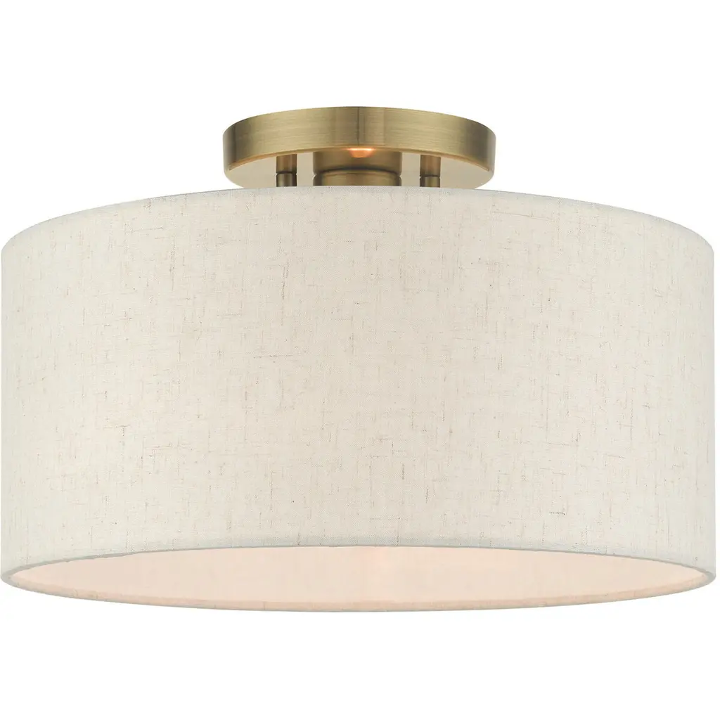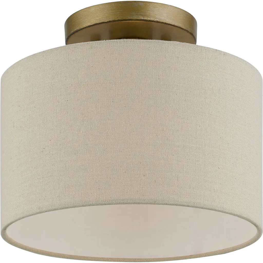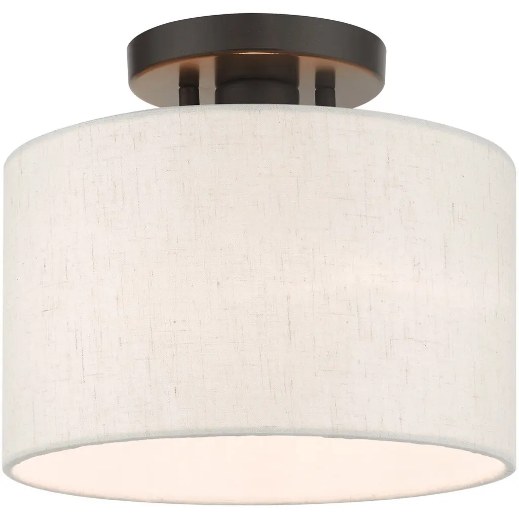 The Midtown Flushmount by Capital Lighting is excellent for creating ambient lighting in contemporary settings, combining simple style with good functionality. Supported by a sleek metal frame, this fixture features a clean, crisp, decorative fabric shade with a refined trim. The lamping within emits a warm glow, gently diffused by a frosted glass disc, completing the drum shape. With its modern design, durable construction, and contrasting shade elements, it's perfect for adding a touch of sophistication to your space, with a damp listing that enables versatile installation.