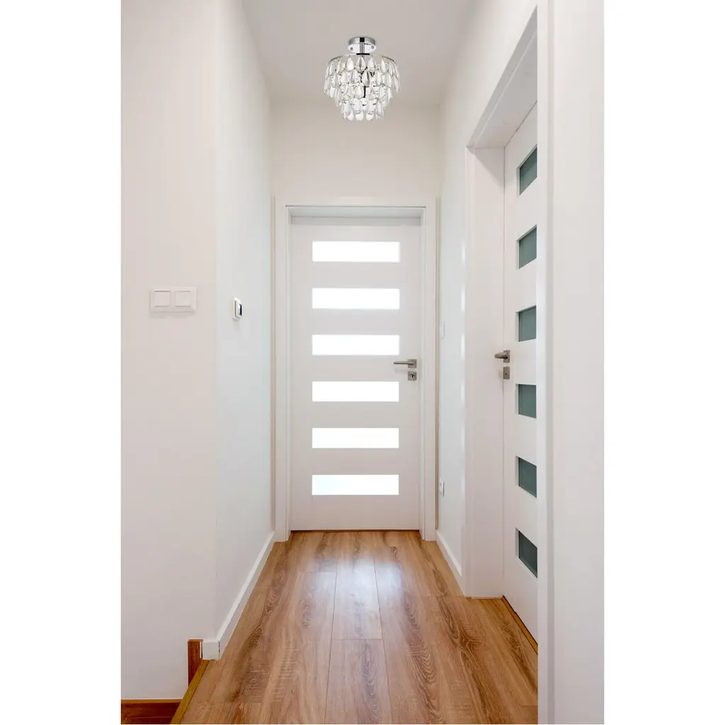 Install this flush mount in any room to give an elegant look. This stunning light features hand painted finish and clear brillant crystals which gives a classy look. Set a cozy atmosphere when you switch on this dazzling fixture and captivate your guests.