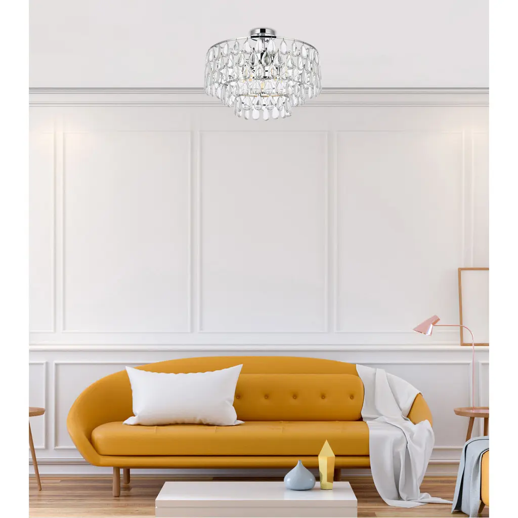 Install this flush mount in any room to give an elegant look. This stunning light features hand painted finish and clear brillant crystals which gives a classy look. Set a cozy atmosphere when you switch on this dazzling fixture and captivate your guests.
