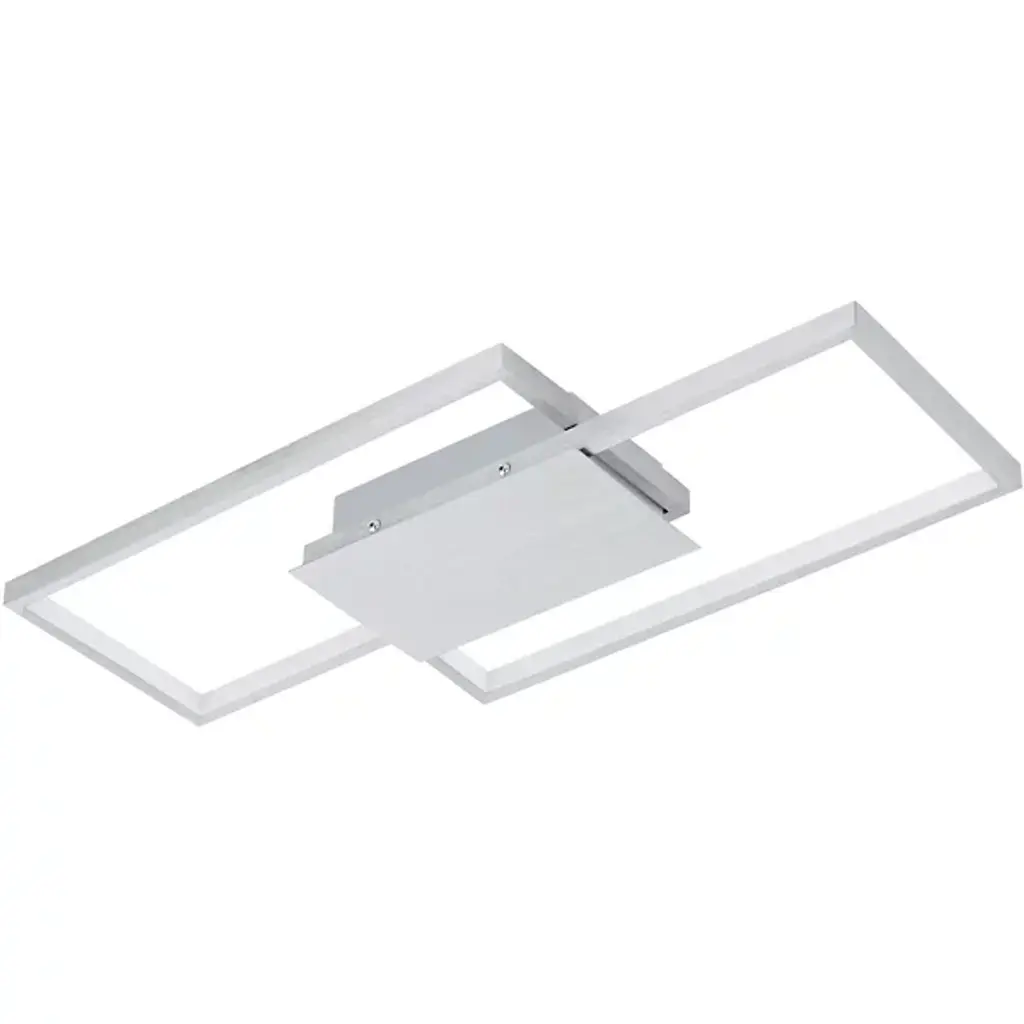 Go bold with stark lines of the Milanius LED Wall / Flushmount from Eglo. A masterful assembly of interlocked geometric rectangles starting from a smooth stepped rectangular canopy/wall mount, the fixture shines down an integrated LED lamp through a robust acrylic diffuser. It’s equally great for brightening up long hallway walls or opening up large living spaces, and the potent energy-efficient LED is as easy on the wallet as it is tough on darkness.