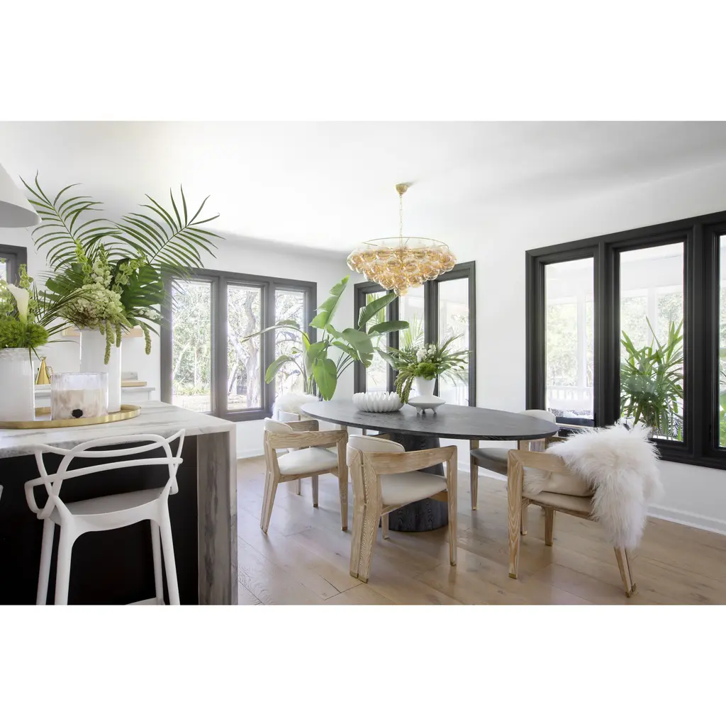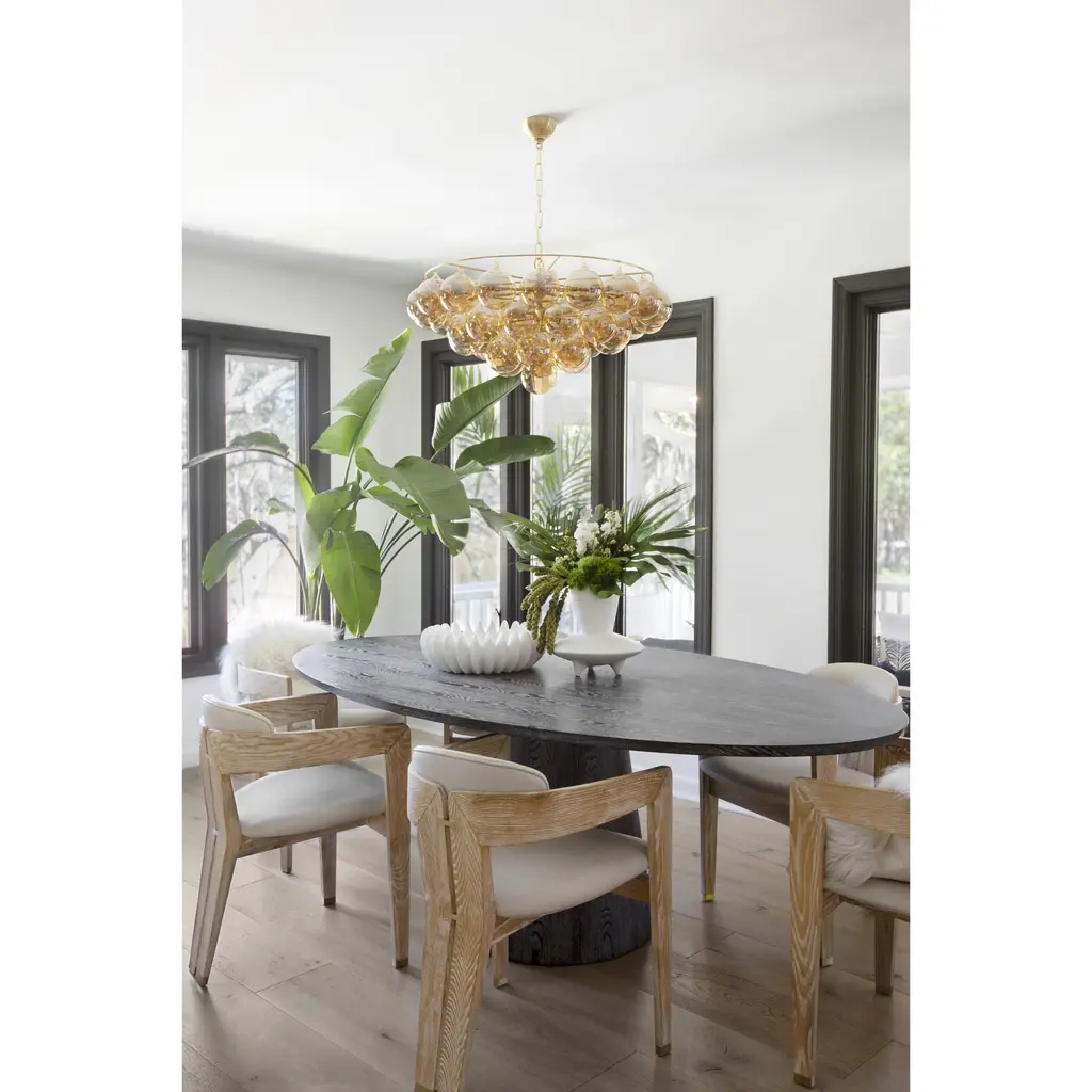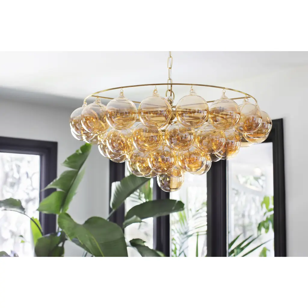 Gorgeous champagne glass globes are clustered around an elegant Aged Brass frame to create a statement piece that is equally showstopping as it is light and airy. Whether you’re dressing up a breakfast nook with the small chandelier, adding a soft glow to an entryway with the flush mount, or adding a touch of coastal glam to your bedroom or dining room with the large chandelier, the possibilities are endless! Part of our Megan Molten x Mitzi Tastemakers collection.