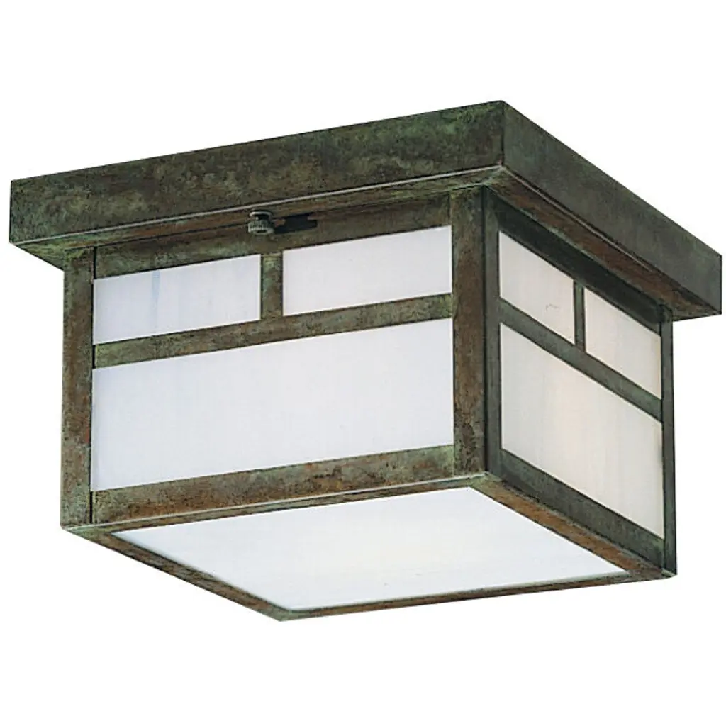 Mission 1 Light 7 Inch Raw Copper Flush Mount Ceiling Light In White Opalescent, T-Bar Overlay