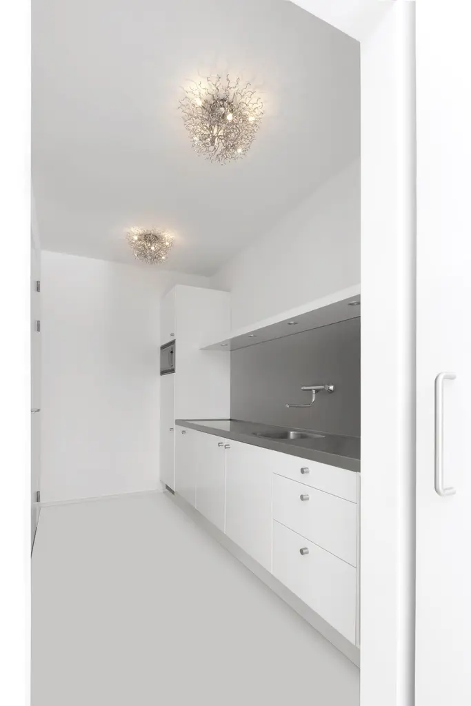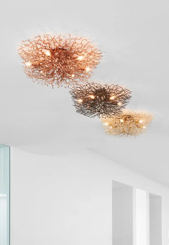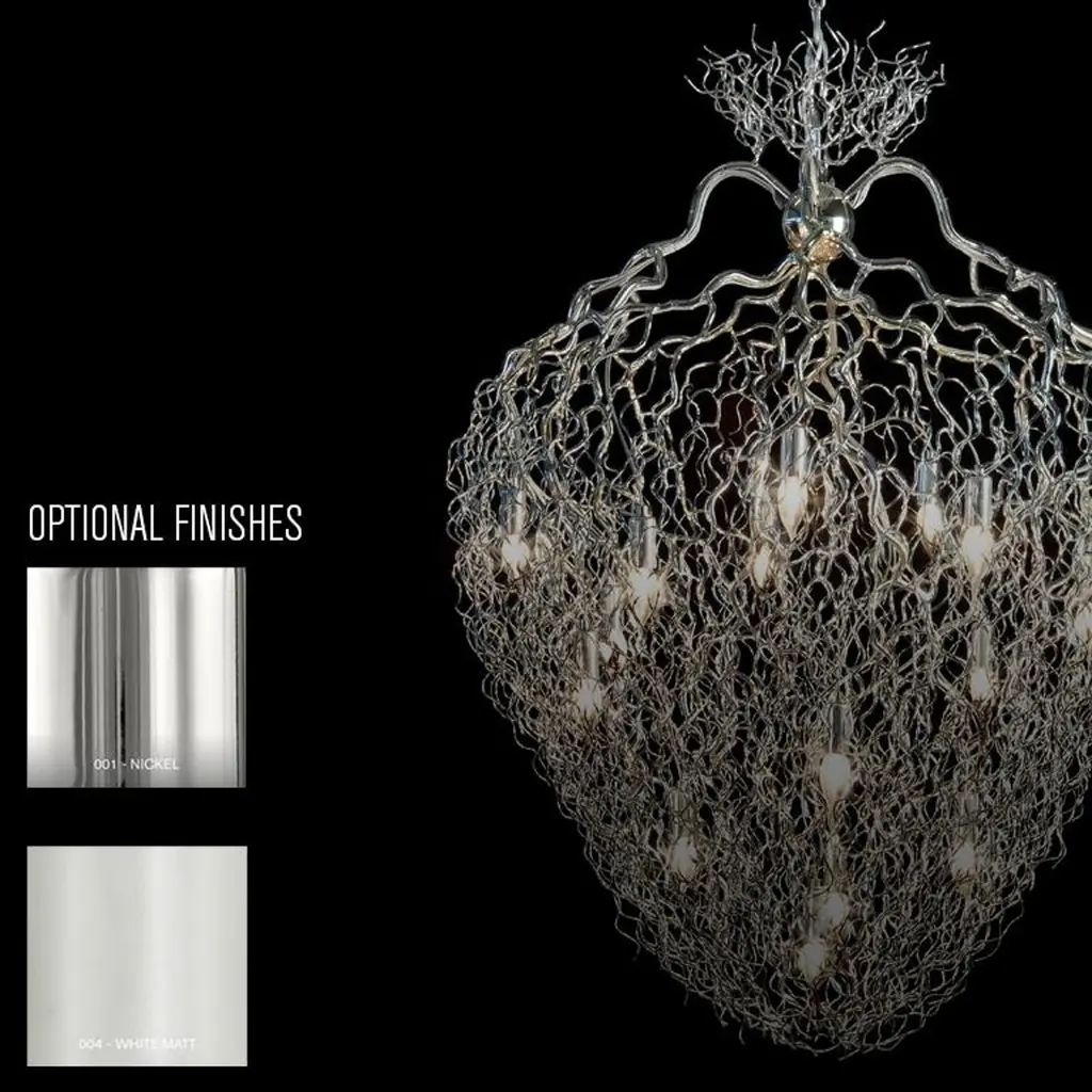 The Hollywood, a modern flush mount in a nickel finish, is designed by William Brand, founder of Brand van Egmond. The Brand van Egmond modern ceiling lights are an important element in each interior project, through the wide application of endless possibilities, while maintaining its sculptural value. The Hollywood Flush Mount is available in several sizes and can be ordered in the finishes white and nickel. Custom dimensions and finishes are possible upon request.Traveling through Africa, designer William Brand was touched by the slenderness and pure beauty of the branches and trees scattered across the land. Just as nature comes in all forms and shapes the Hollywood collection is equally diverse, including round, conical, and square shapes. The Hollywood collection is available as a chandelier, pendant, floor-, table- and wall light.