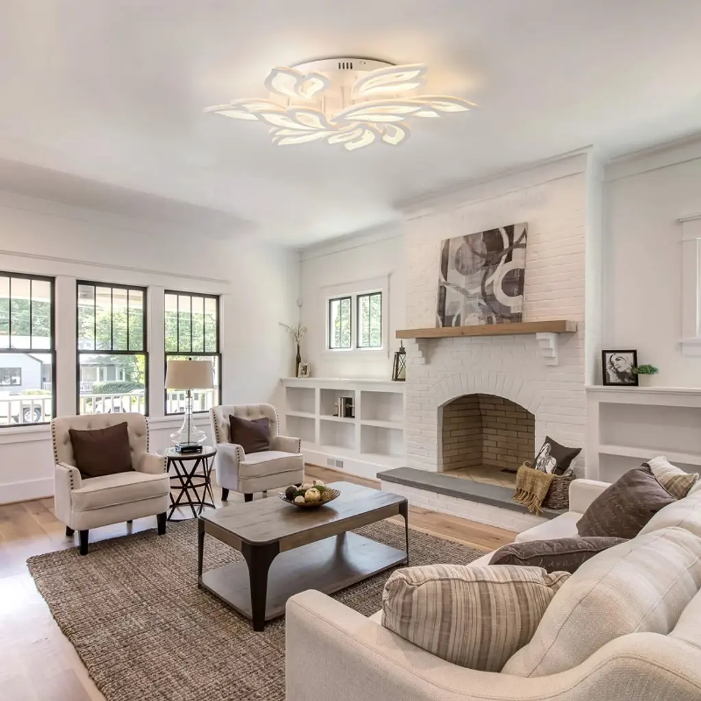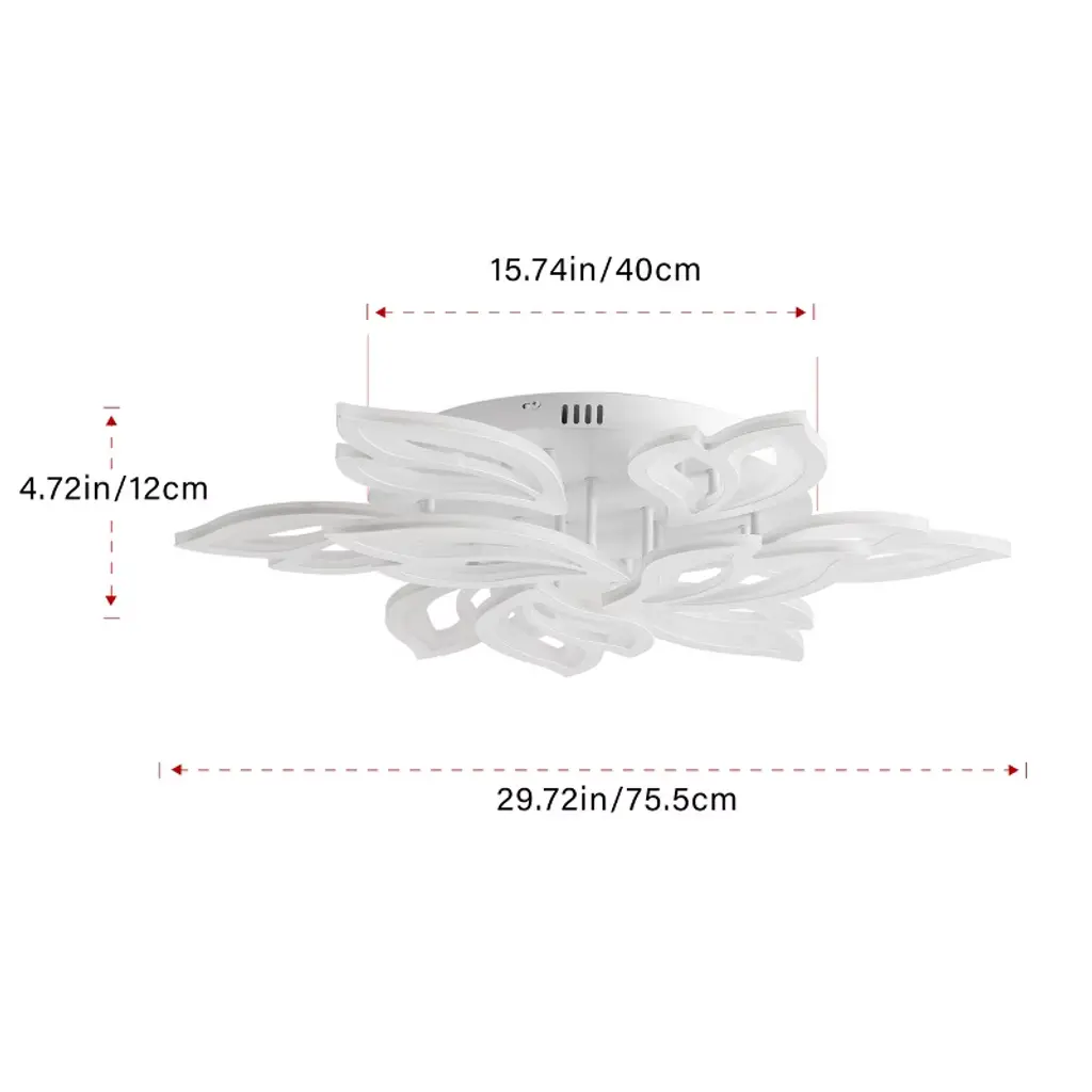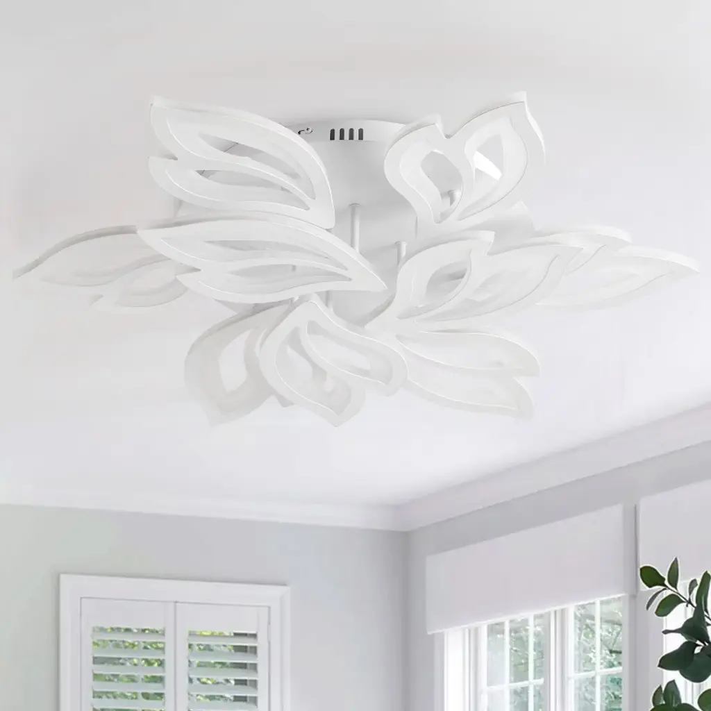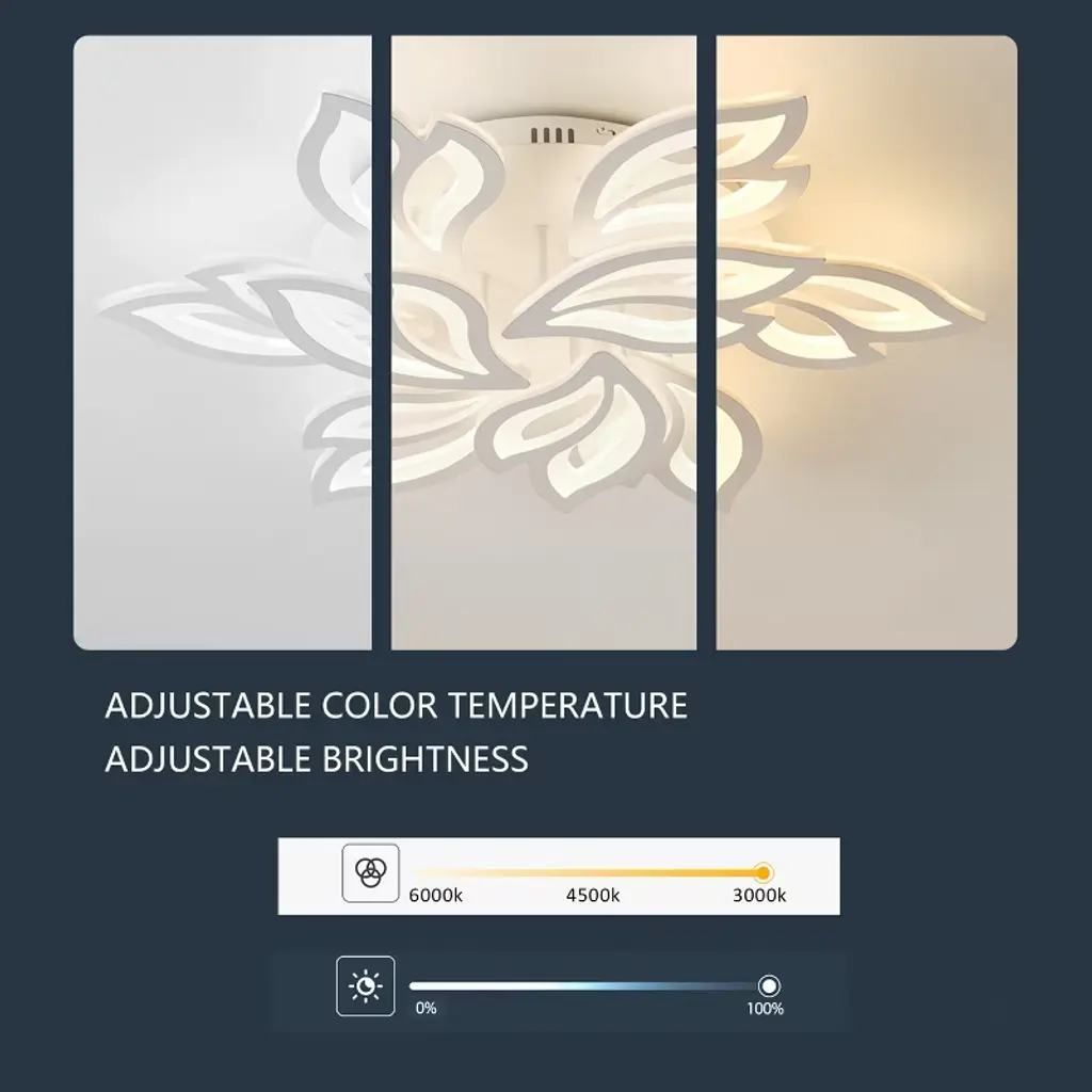 Transform your space with the organic elegance of this modern LED petal ceiling light, designed to mimic the soft curves of blooming flowers. The fixture features layered acrylic "petals" in a clean matte white finish, mounted on a sturdy iron base, making it an eye-catching statement piece in any modern bedroom, living room, or hallway. With adjustable brightness and three selectable color temperatures (3000K / 4500K / 6000K) controlled via wall switch, you can create the perfect ambiance for any occasion¡ªno remote needed. A built-in DIP switch allows you to fine-tune the default lighting tone to match your preferences. Delivering 9600 lumens of powerful LED light at 75W, this fixture is both energy-efficient and ETL certified, ensuring quality and safety for your home. Whether you're updating a minimalist space or adding flair to a cozy corner, this floral-inspired flush mount is the perfect blend of form and function.