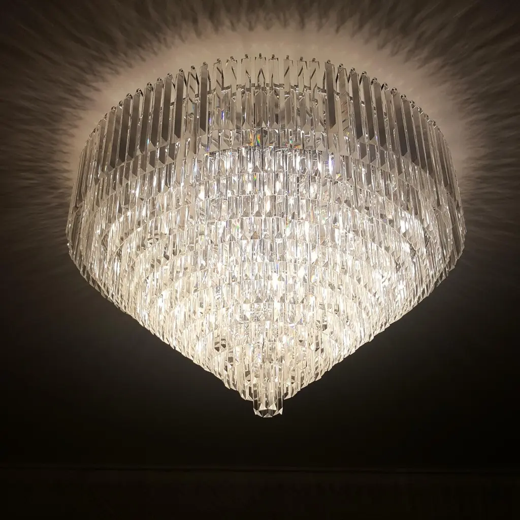 Contemporary Art Deco Style Plafonnier Chandelier - Customizable in Various Sizes with Lead CrystalIntroducing a brand-new, modern plafonnier chandelier that captures the elegance of Art Deco style, designed to perfectly fit both smaller and larger spaces. Crafted with precision using lead crystal, this exquisite piece is a testament to our in-house production prowess, proudly made in Berlin. What's more, we offer the convenience of on-site installation through our dedicated team. This chandelier is available in a range of sizes, ensuring a flawless fit for your environment.Specifications and CraftsmanshipDimensions: Diameter: 80 cm, Height: 55 cmAccommodates 21 x E14 bulbsMaterial: Chrome SilverConstruction: Lead CrystalUnveiling Modern BeautyThis modern plafonnier chandelier seamlessly merges contemporary aesthetics with the timeless allure of Art Deco style. Its lead crystal construction adds a touch of opulence, radiating sophistication and timeless beauty. Crafted with precision by our Berlin-based artisans, its quality and design uphold the highest standards.Versatile Sizing and On-Site InstallationThe chandelier's versatile sizing ensures it effortlessly adapts to spaces of varying dimensions. Whether your setting is compact or spacious, this chandelier will infuse it with elegance. For added convenience, our skilled team can expertly perform on-site installation, ensuring an impeccable fit and placement.Tailored to Your VisionSelect from a range of sizes that seamlessly align with your space. The dimensions of Diameter: 80 cm and Height: 55 cm showcase its adaptability to diverse settings, all while retaining its striking presence.Radiating IlluminationWith the capacity to hold 21 E14 bulbs, this plafonnier chandelier casts a warm and inviting glow throughout your space. The interplay of chrome silver and lead crystal reflects and refracts light in captivating ways, fostering an ambiance that is both inviting and sophisticated.Your Gateway to EleganceThis modern plafonnier crystal chandelier represents the epitome of contemporary design and masterful craftsmanship. With its availability in various sizes, the option for on-site installation, and the allure of lead crystal construction, it stands as a testament to our commitment to infusing elegance and beauty into your living spaces. Illuminate your surroundings with the exquisite blend of modernity and Art Deco charm that this chandelier embodies.