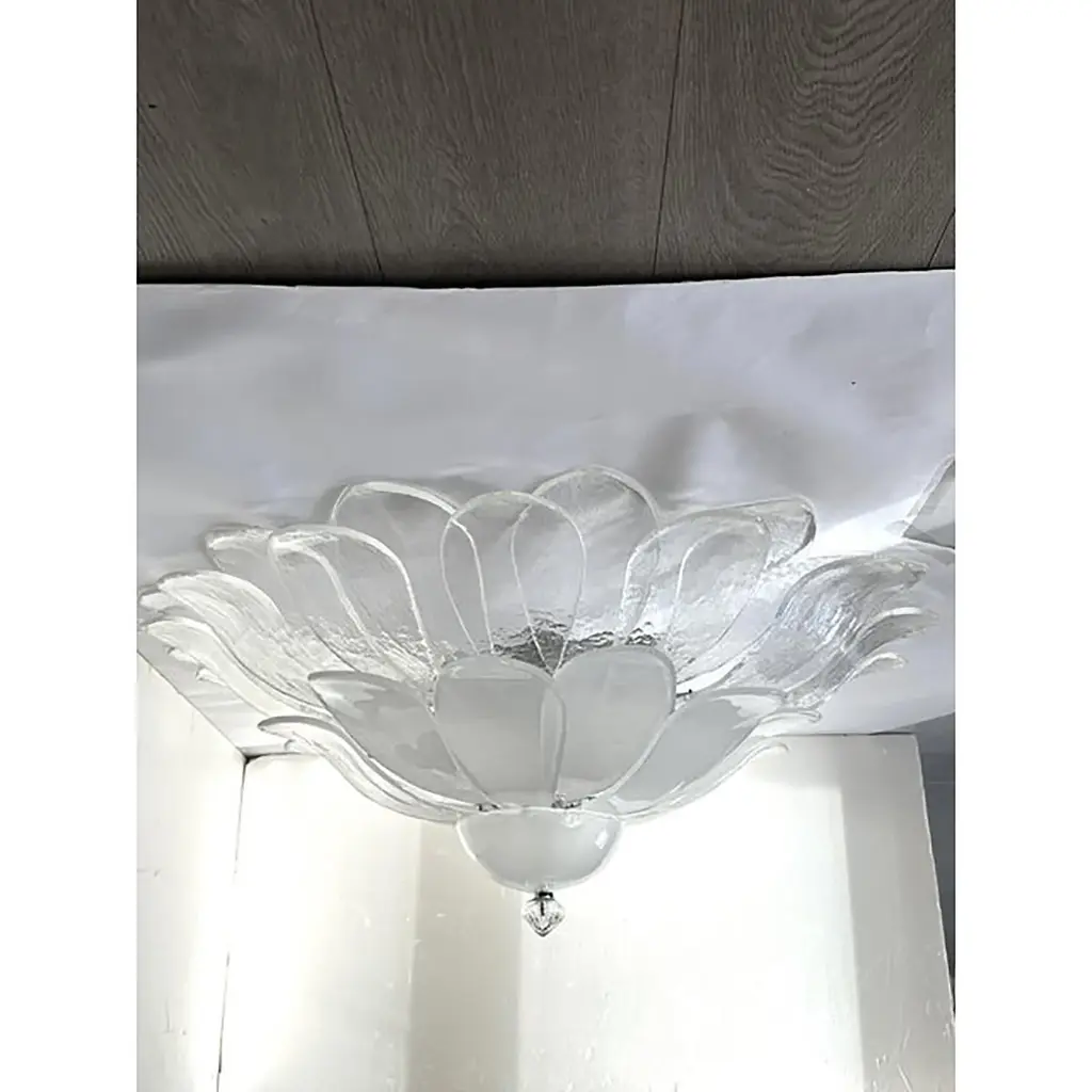 Modern Transparent And Sanded Petals Murano Style Glass Flush Mount By Simoeng