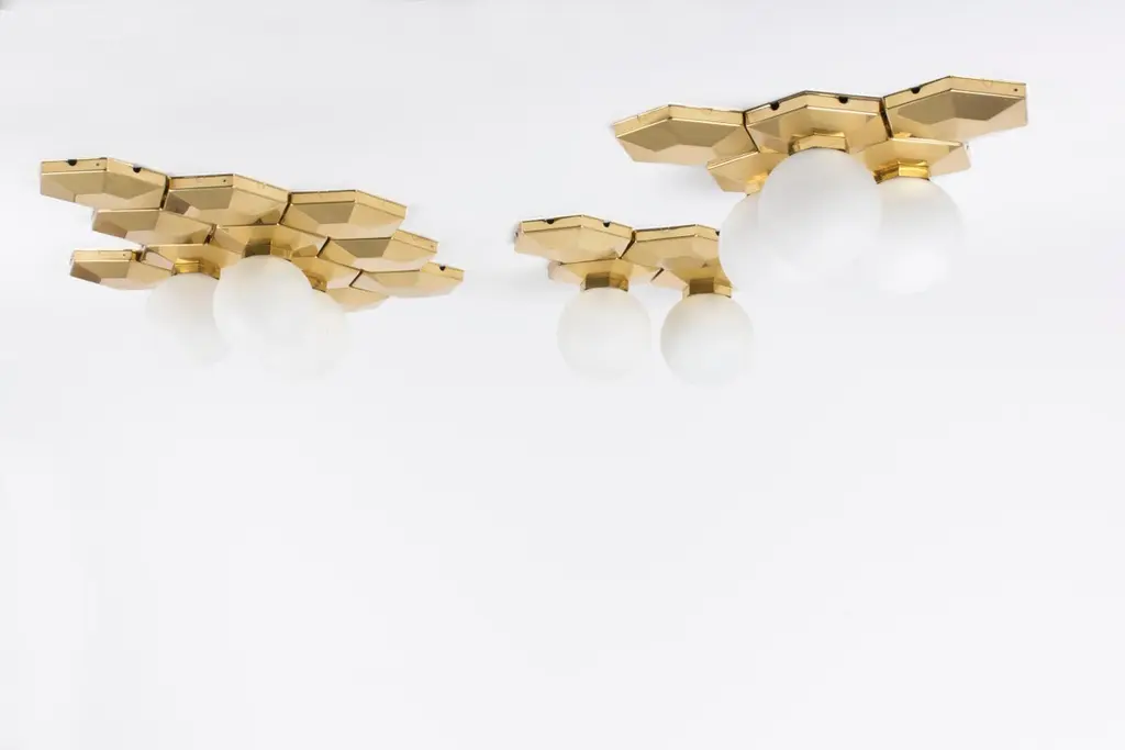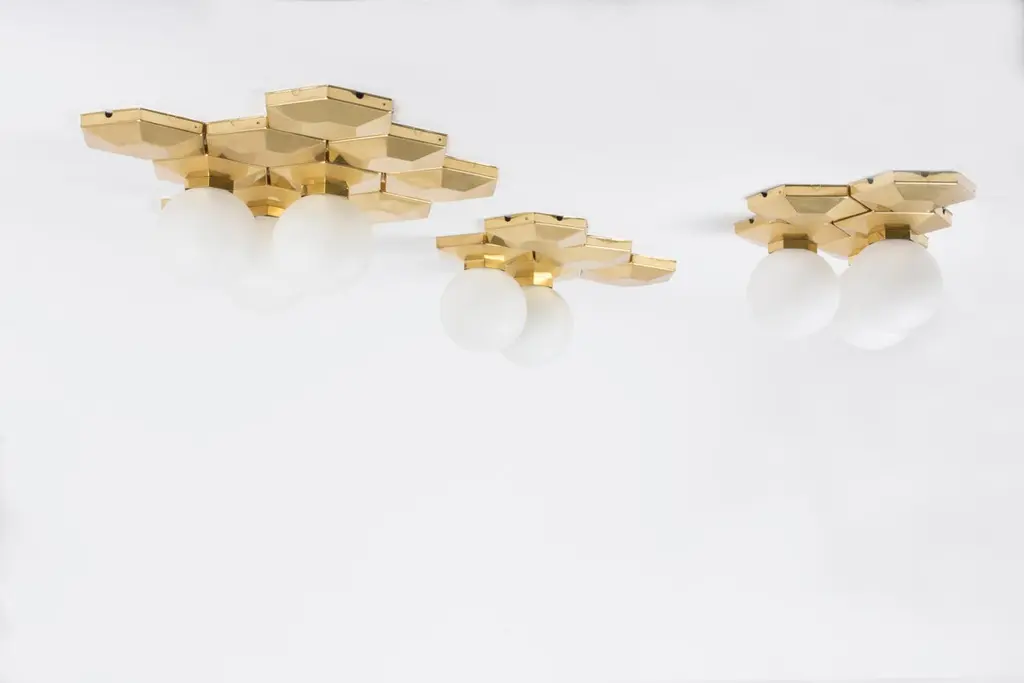 Modular Brass And Glass Flush Mounts, Circa 1970