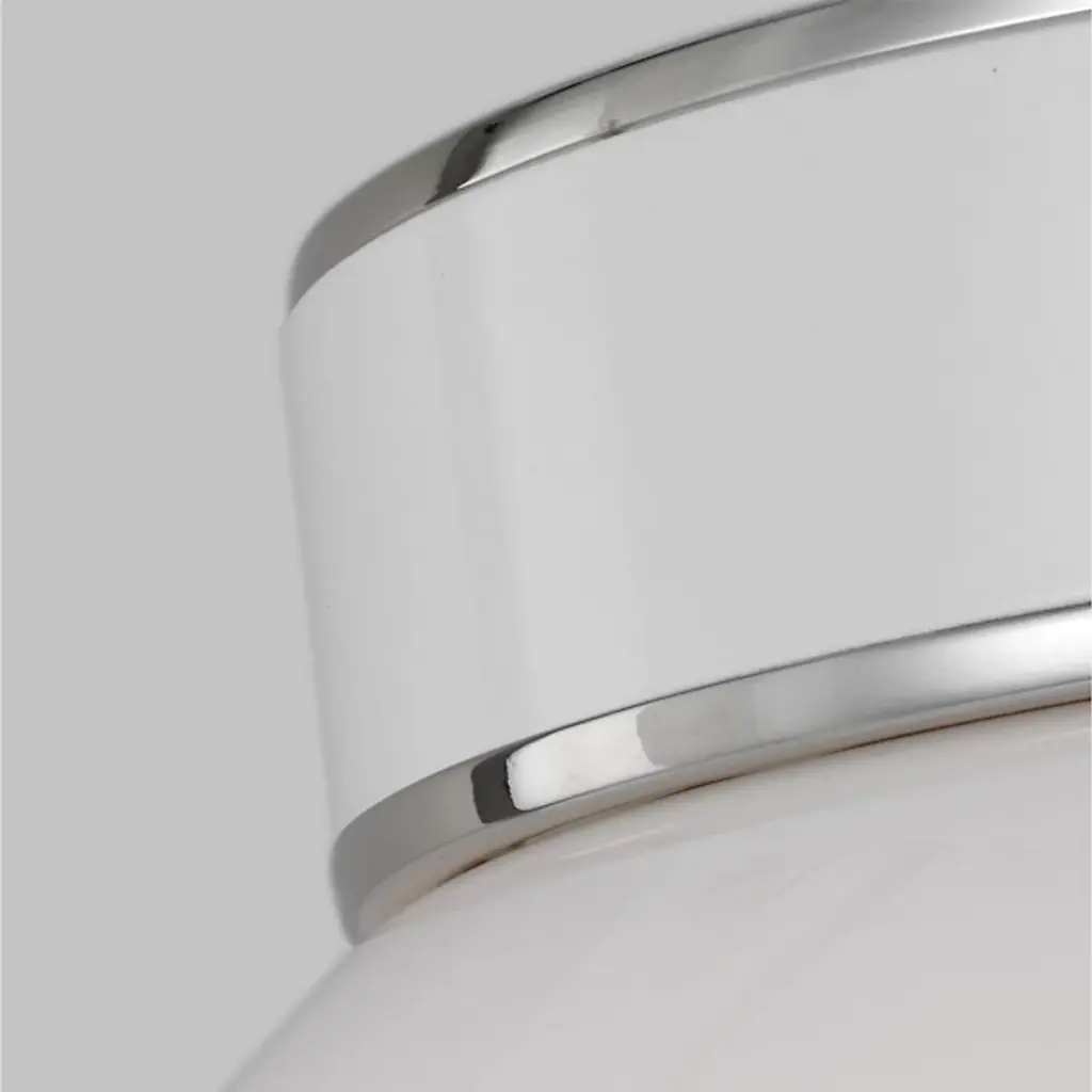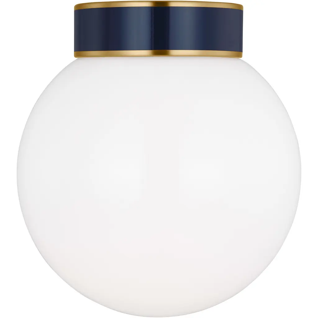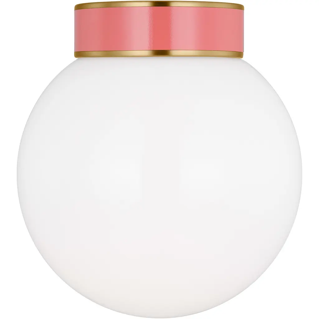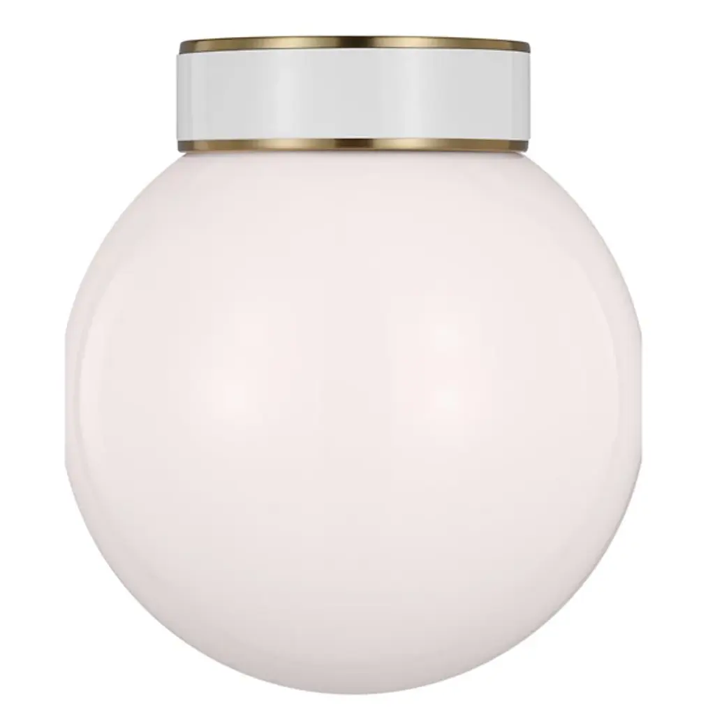 TheMonroe Globe Flushmount by Visual Comfort Studio, formerly known as kate spade new york, is a chic, simple design inspired by graphic enameled metal jewelry and decorative accessories by Kate Spade that nod to the late 50s atomic era of colorful designs. Nestled close to the ceiling, this piece has a clean profile as it pairs a smooth, spherical shade with a round canopy that is elevated with slender metal accents. Offering a uniform, welcoming wash of illumination to rooms, this flushmount has a sophisticated, tailored look that is at home in a wide range of spaces.