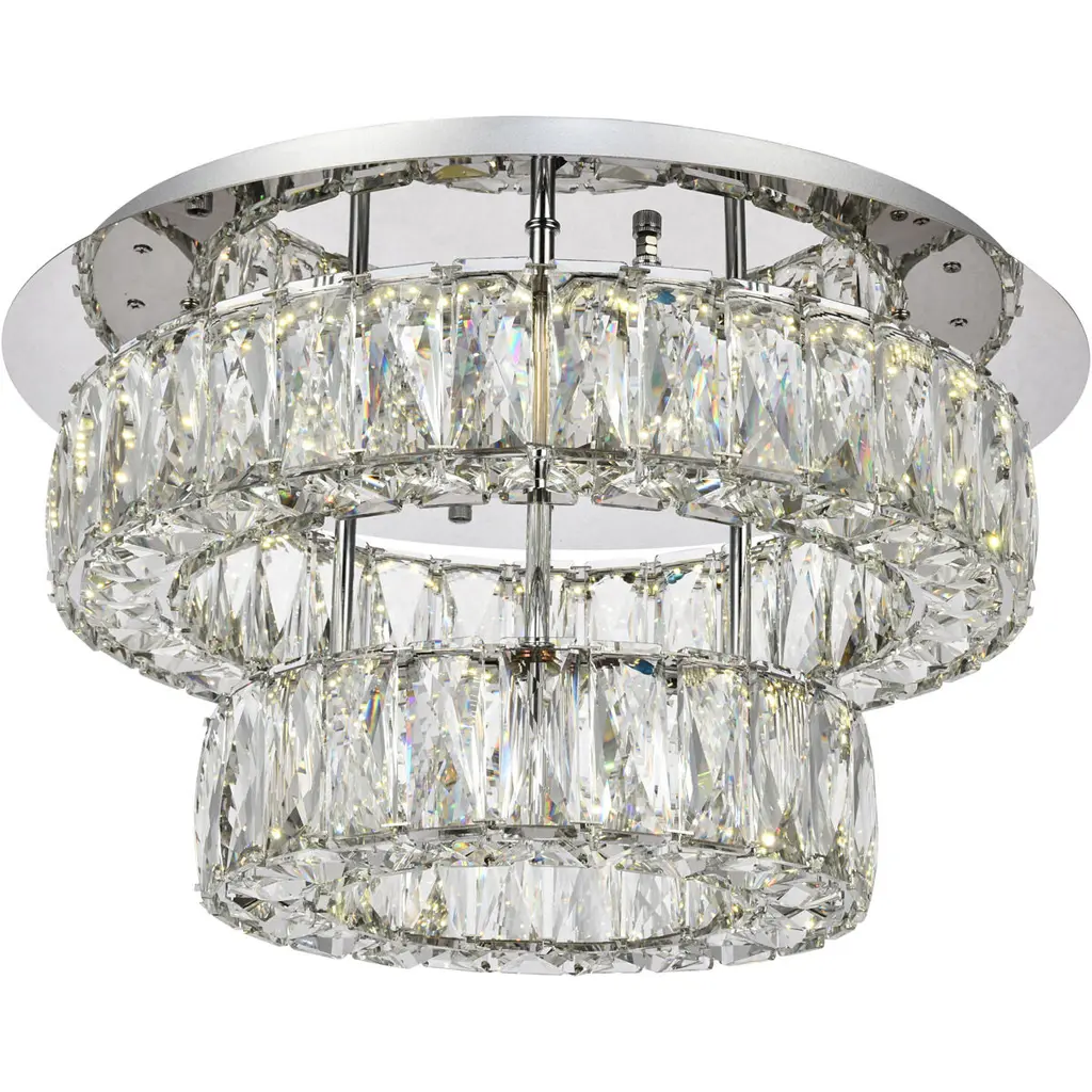 Diamonds are a girl’s best friend, and sparkling Monroe collection flush-mount lamps take Marilyn’s famous lines to heart … for women and men alike. Two tiers of minimal stainless-steel rings in a smooth chrome finish become dazzling when they are covered with rectangular and square spectacularly faceted royal-cut clear crystals. Brilliant integrated LED shine unseen from within, while the highly polished mounting fixture only increases the intensity of the light. Stunning when placed in a dining room, foyer, living room, or bedroom.