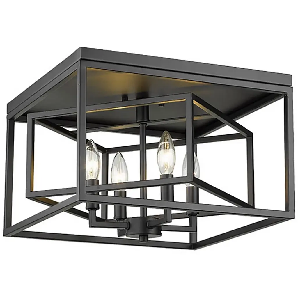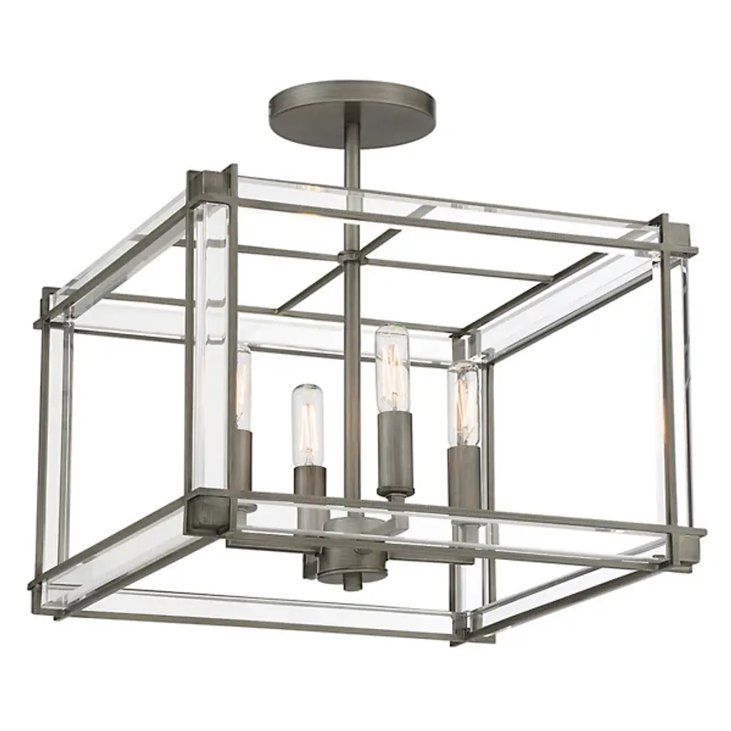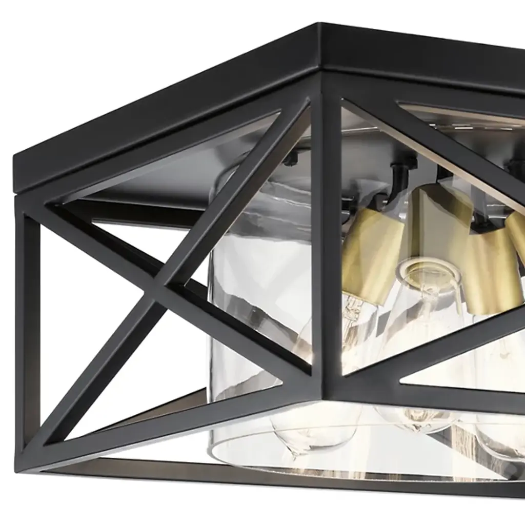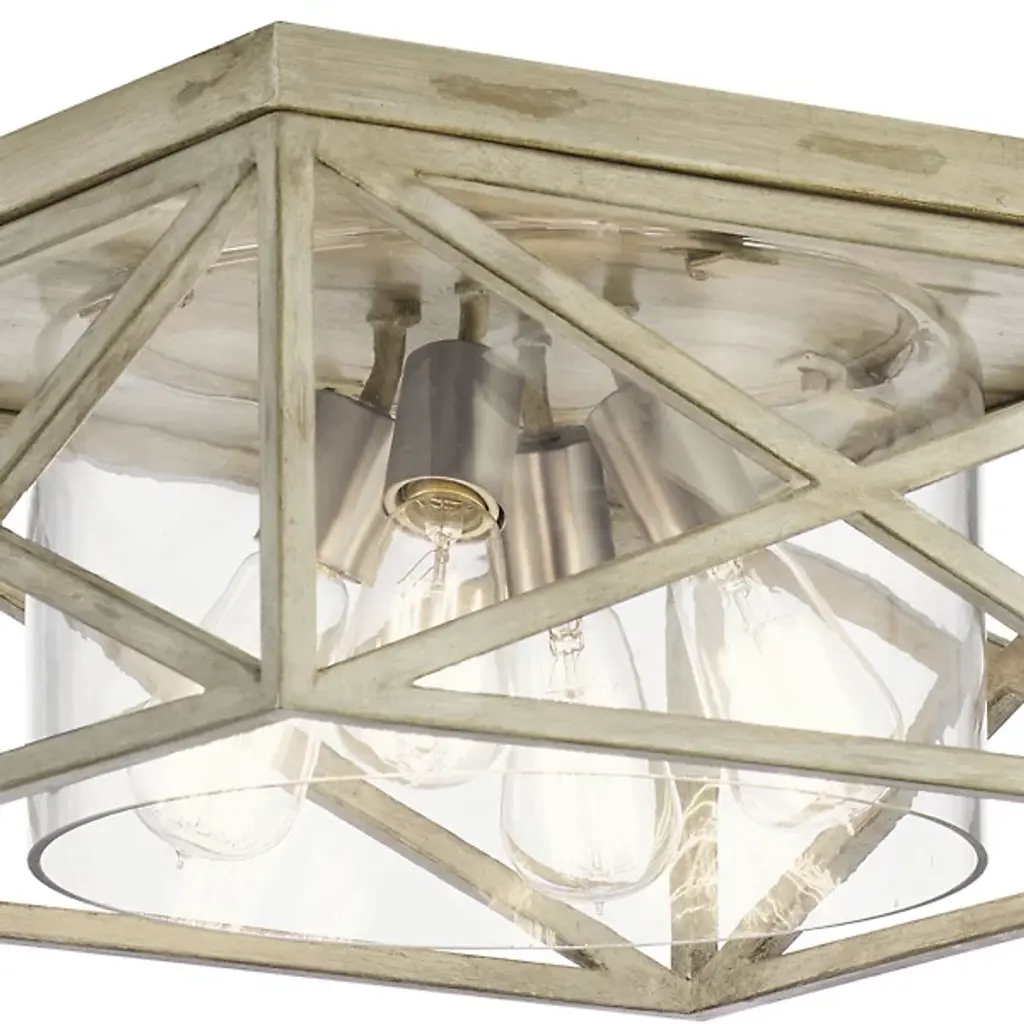 The Moorgate Flushmount from Kichler adapts rustic X-frame patterns into ceiling lighting. Steel crossbars intersect beneath clear glass, referencing traditional furniture and architectural details. Four light sources create multi-directional illumination through the single glass enclosure. This fresh take on farmhouse lighting brings familiar design elements to overhead spaces. The fixture's clean lines and geometric patterns offer practical lighting while incorporating recognizable country décor motifs. Its adaptable style works naturally in dining rooms, entryways, and living spaces.