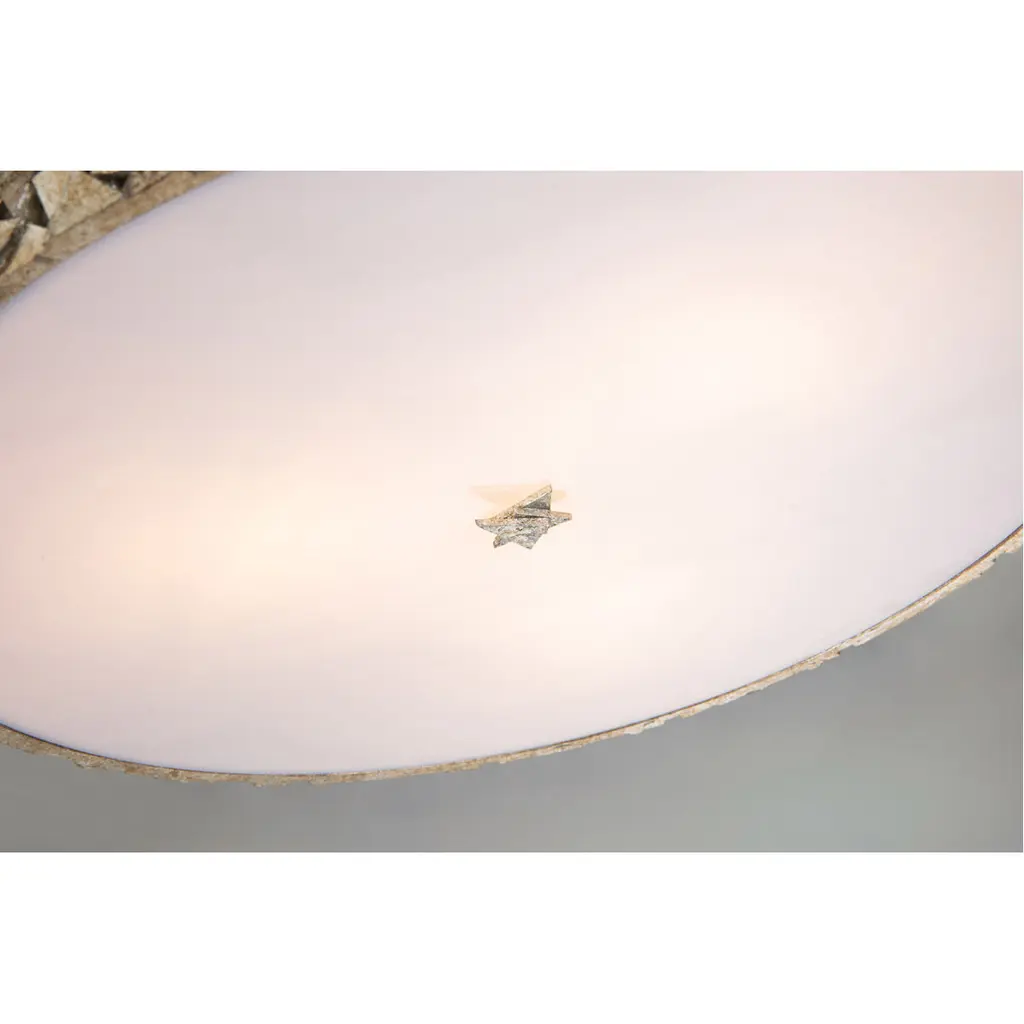 This eye-catching centerpiece uses pieces of our Mosaic collection for inspiration, giving this 4 light flush mounted ceiling light a charming and finished look. Using the 20 inch round shape for a touch of modern, this antique silver flush mount fixture has the best of both a traditional and contempory design. Using a diffused white glass to give off a crisp and flattering light, making this ceiling fixture a great look to finish a bedroom, closet, or living room.