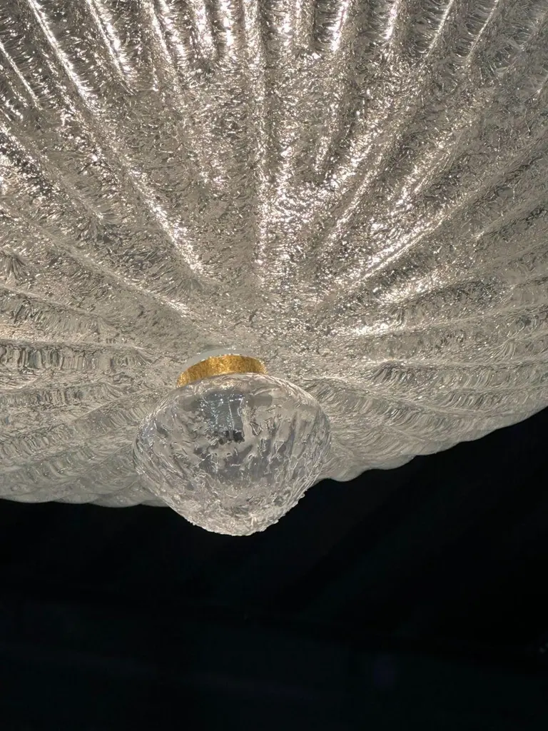 Modern Murano glass clear "granola" flush mount chandelier. Circa 2000. The chandelier has been professionally re-wired, cleaned and is ready to hang.