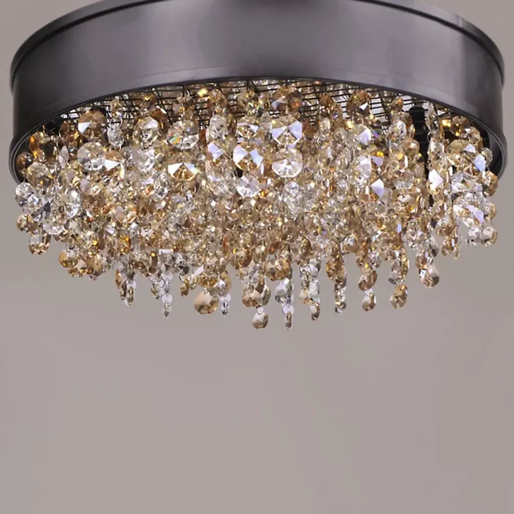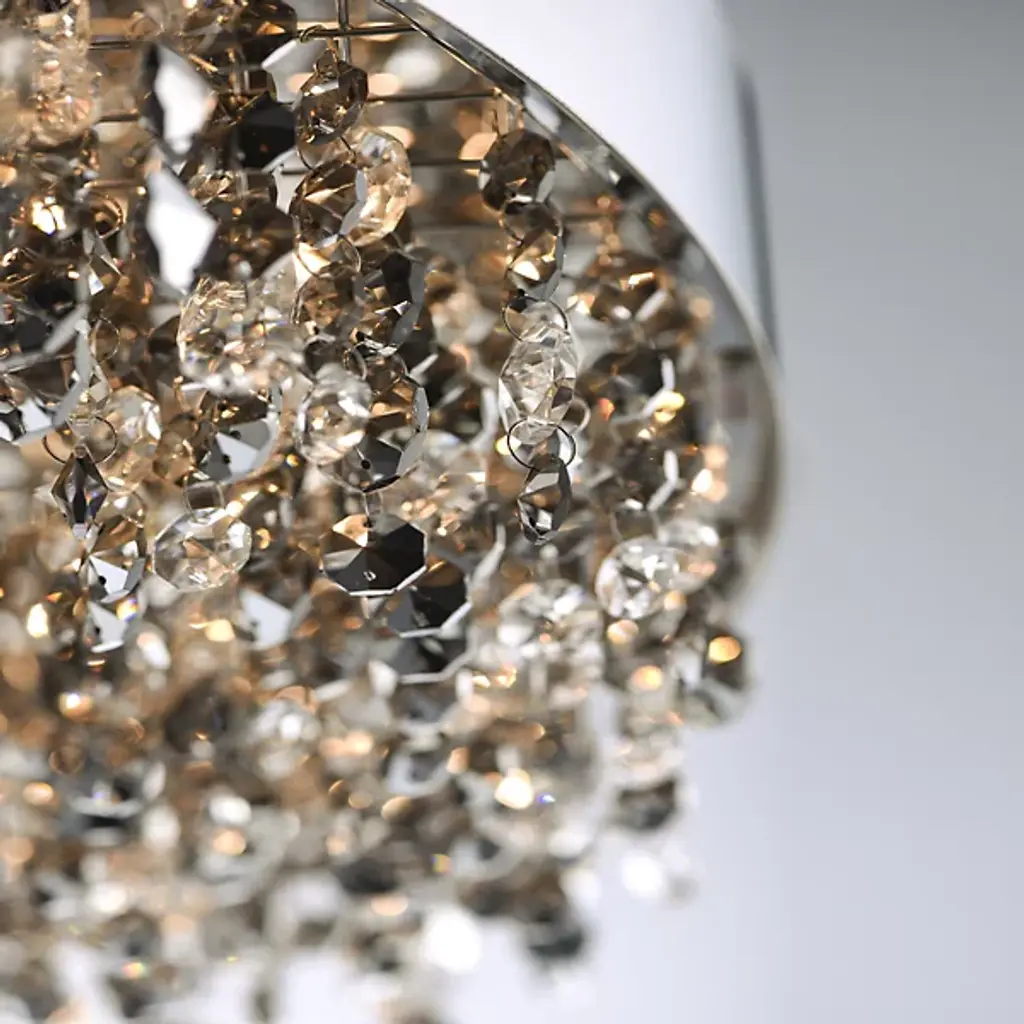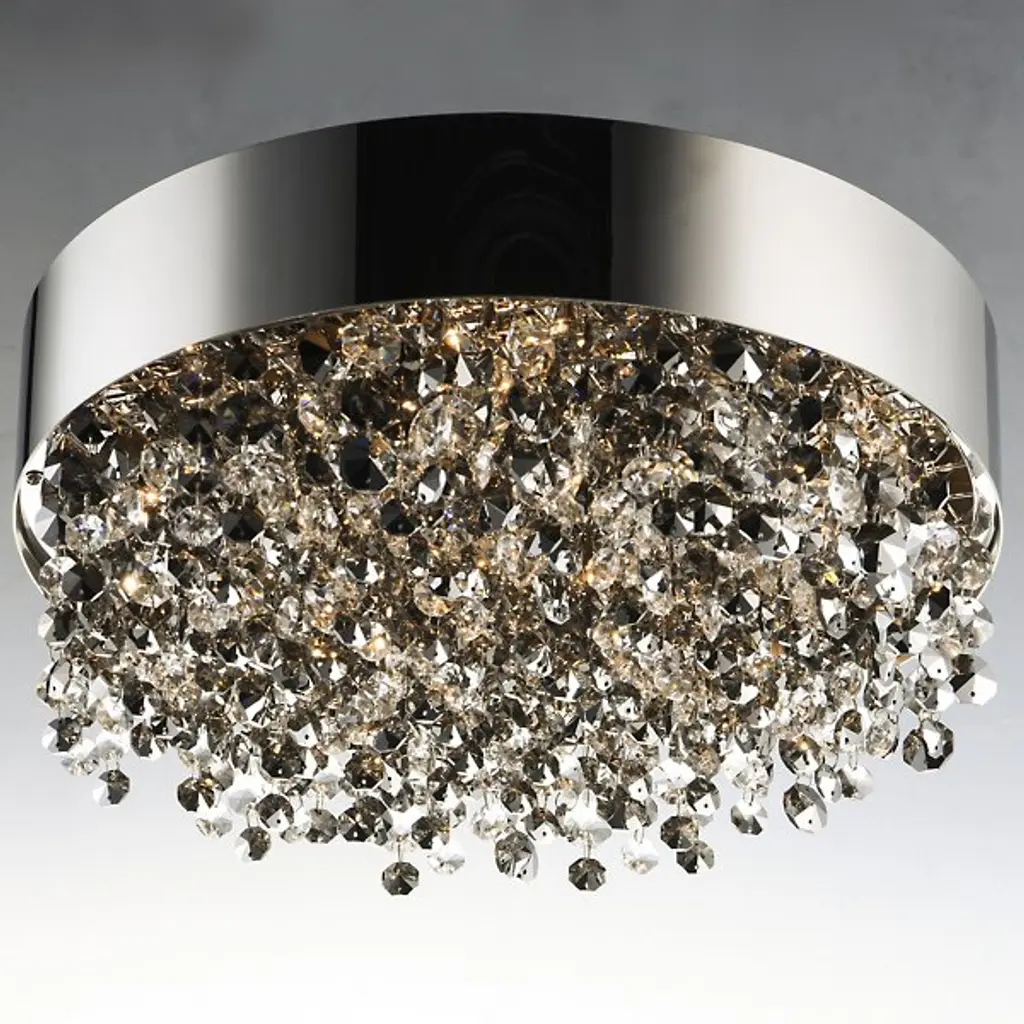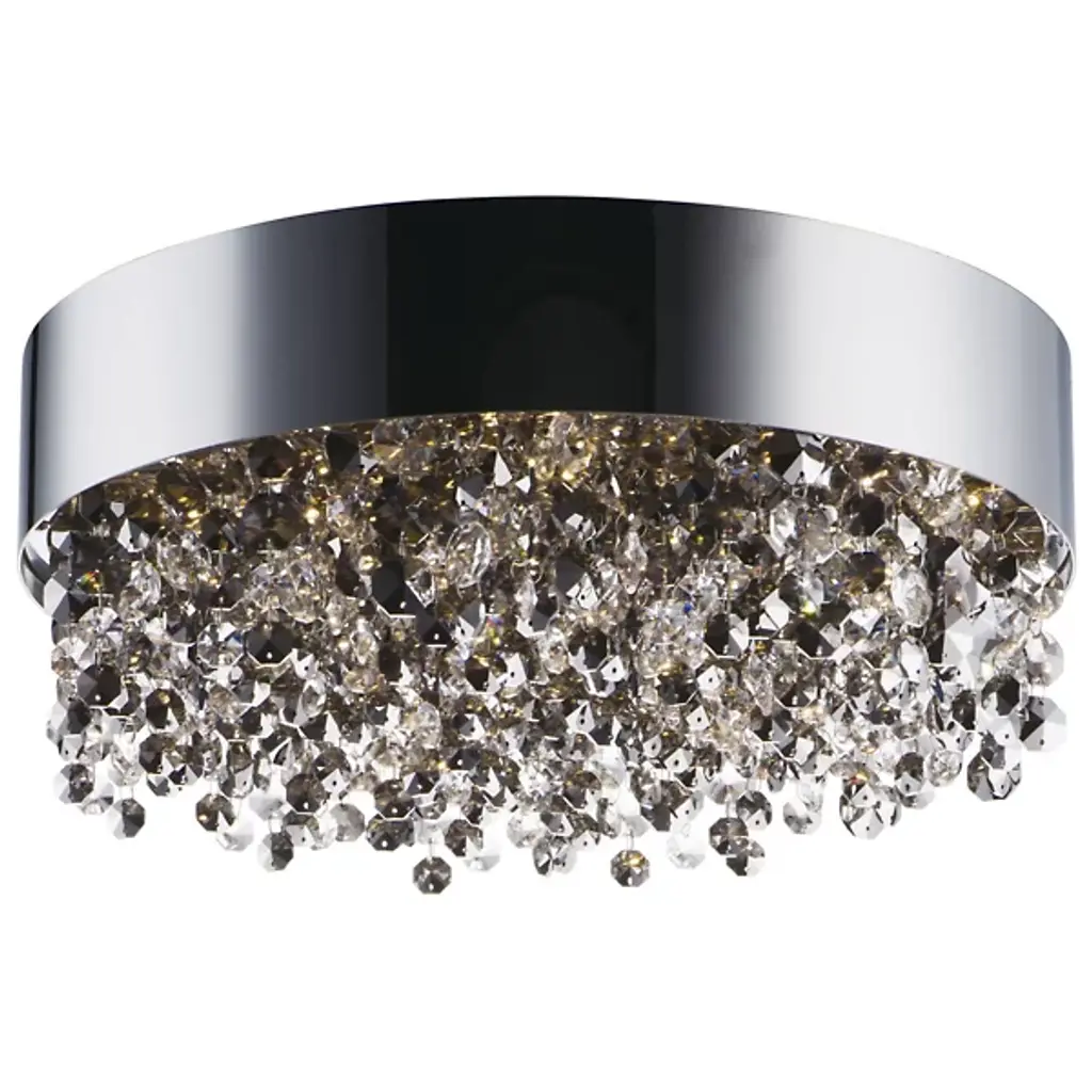 Ornate brilliance! The Mystic LED Flushmount by Maxim Lighting dazzles in its captivating design. It showcases a classic drum body made of steel that has lattice cutout patterns at the bottom. Numerous glistening crystal strands hang down from these square patterns to create a bejeweled look in your interior space. The light coming from the circular body gets reflected and refracted by the gleaming crystals and creates an incredibly stunning lighting experience. The use of dimmable energy-efficient LED source and up-to-date lighting technology ensure that there is no glare.