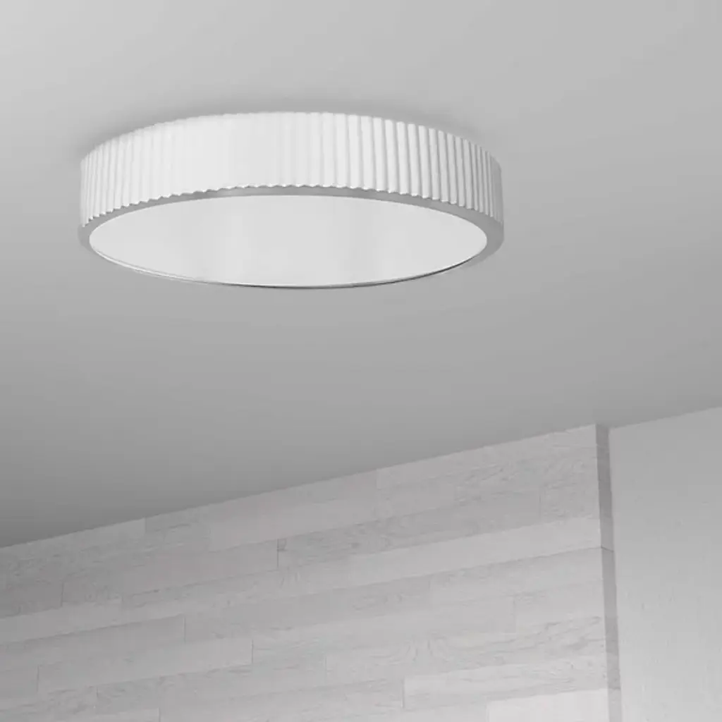 The Nabisco LED Flushmount by Dainolite is a clean and contemporary piece with energy-efficient technology. Its disc-shaped shade features a low-profile design that rests flush against the ceiling, allowing it to integrate easily into any space. Vertical ridges run along its exterior, contrasting neatly against the smooth surface of its acrylic diffuser below. Its LED sends a clean and steady wash of ambient light over its surroundings to elevate its environment and provide functional everyday light.