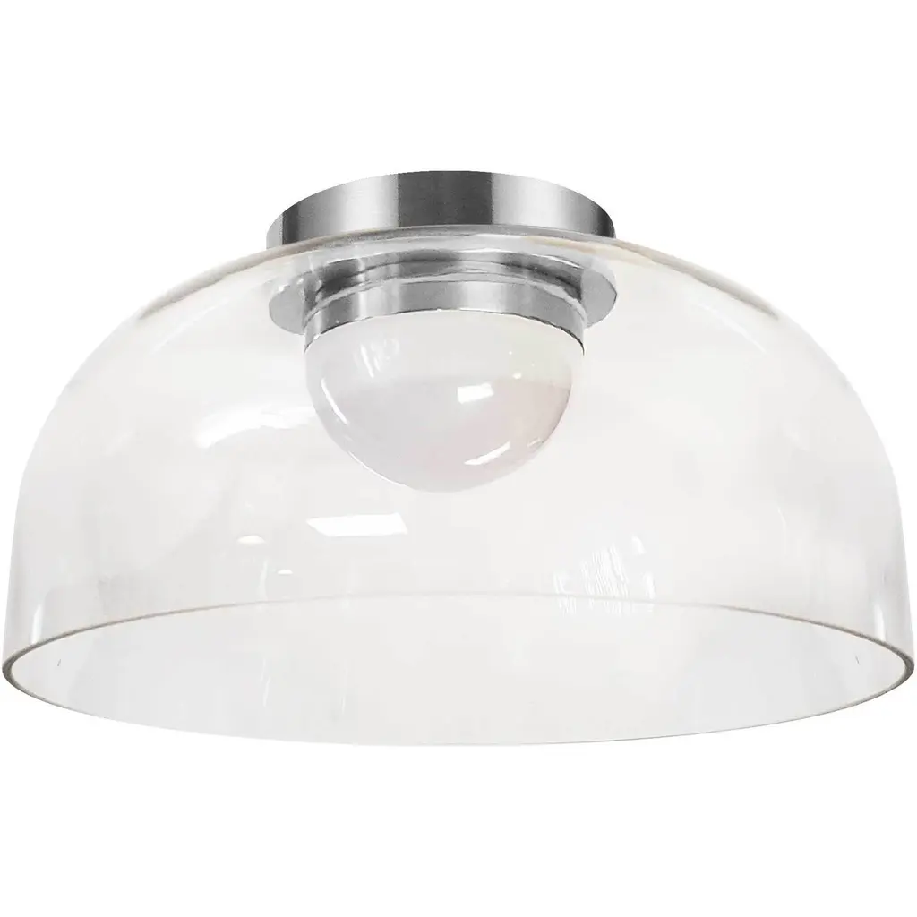 The Nadine LED Flush Mount by Dainolite embodies the minimalist aesthetic. The 7 inch diameter clear glass cloche is supported by an understated base, making this the light the perfect choice for the contemporary bedroom, hallway, or office.