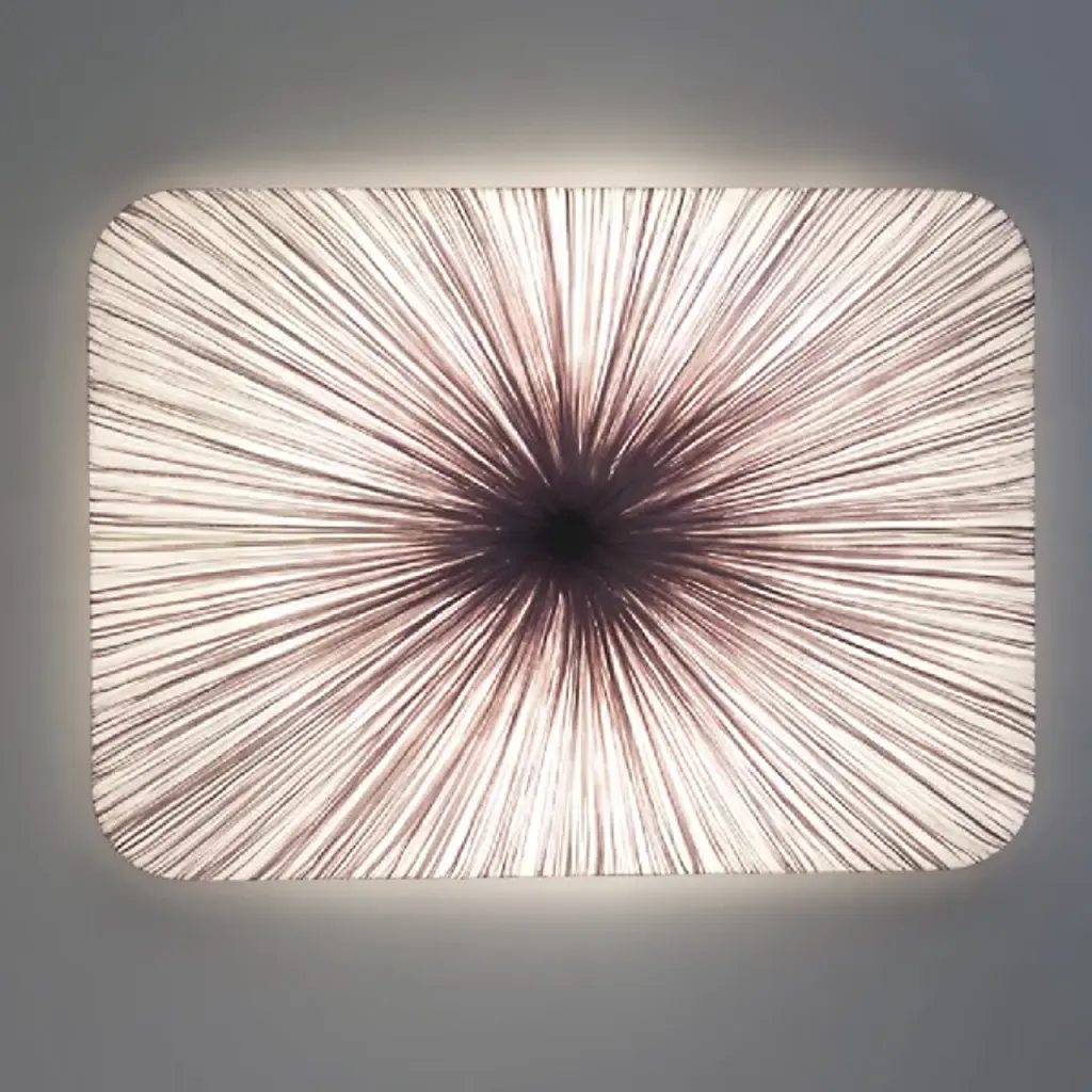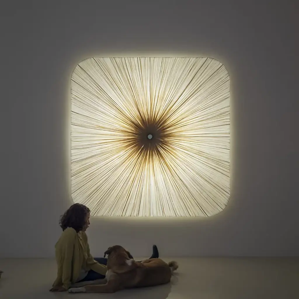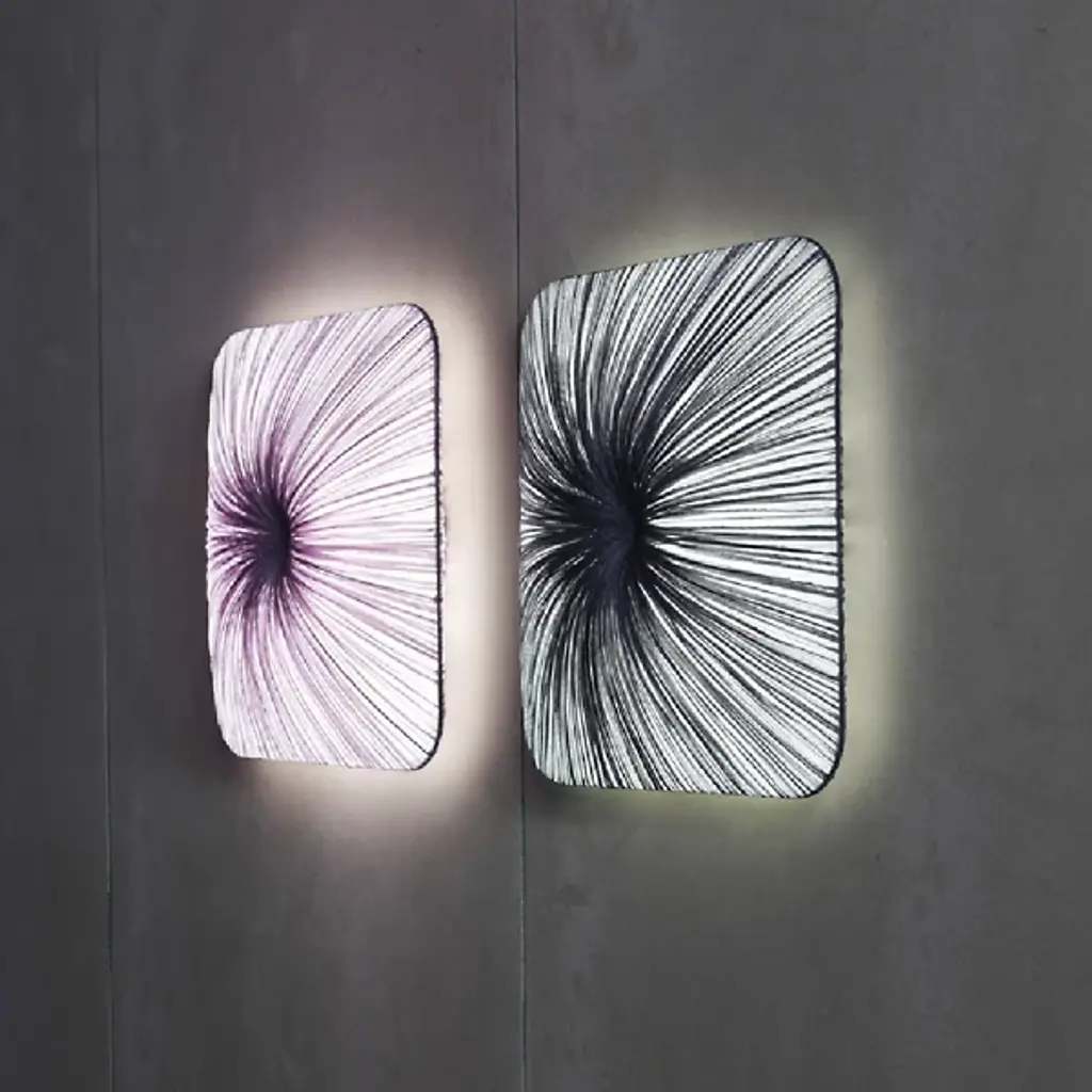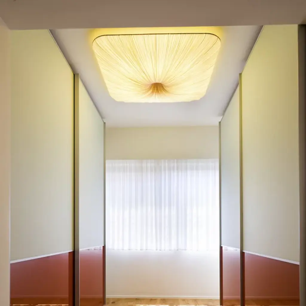Named and designed after Nara, the ancient Japanese capital. Exhibiting a grid-like pattern reminiscent of the ancient capital city, the Nara Wall / Flushmount by Aqua Creations takes the shape of a rounded square. This luminaire utilizes four power-efficient LED modules and a handcrafted pleated silk shade that evenly diffuses light along its surface. The LED modules are dimmable and allow the user to adjust the light intensity to create the perfect atmosphere in any setting.